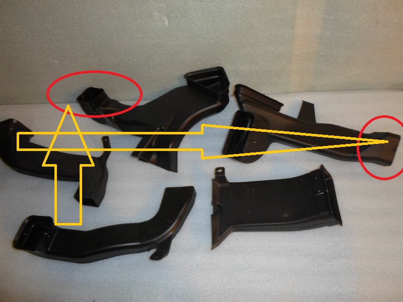 Вот-вот, это очень оптимистическое утверждение! Такой вариант очень даже ничего себе. Интересно, насколько средние воздуховоды налазят на заглушенные после выреза? ( т.е.остаётся зазор или нет? ).asn писал(а):В предидушем посту на первом фото изображен комплект "купированый". Если хорошо приглядеться, то видно , что края, к которым должны сопрягаться промежуточные вставки, скруглённо заглушены. Прикладываю файл, на котором полноценный комплект с промежуточными воздуховодами. А последние перед диффузорами, которые дуют в ноги задним пассажирам, соответственно, в центральной консоли. Так вот, приходилось мне однажды при помощи вибропласта сопрягать средние воздуховоды и заглушеные. Отрезал торцевую запайку и изголялся лепкой. Ничё вышло. Всёж проще чем покупать не заглушеный. Возможен такой "реверанс и без снятия торпедо, соответственно...