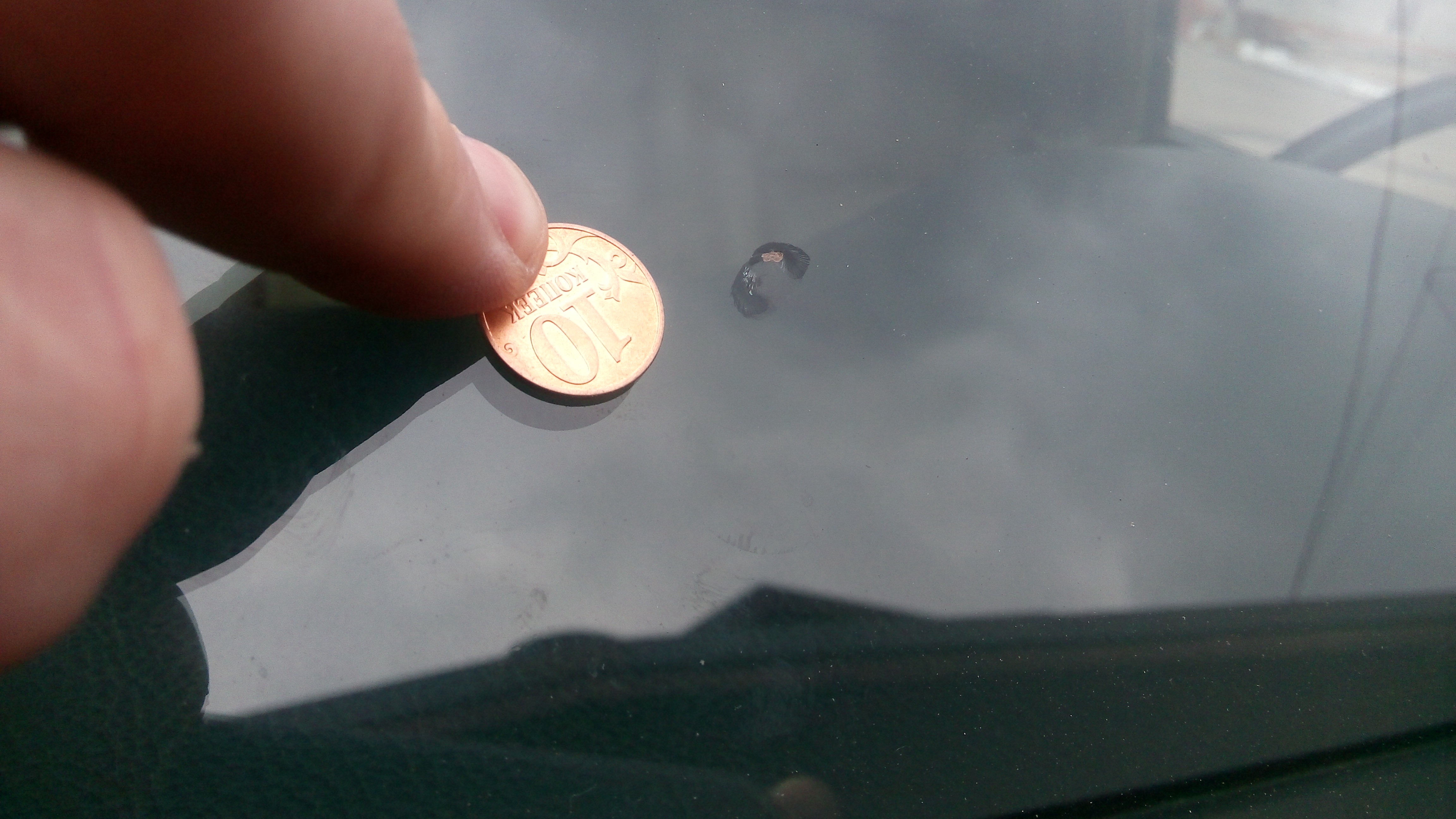 Так и у меня удар был сильный еще в начале лета 14, в декабре только стрелу пустило, ну вроде жить не мешает, на родном помню сразу удар и бомба, по всему стеклу паутина...Виктор74 писал(а):Уже месяц наверное такая вот хрень живет.