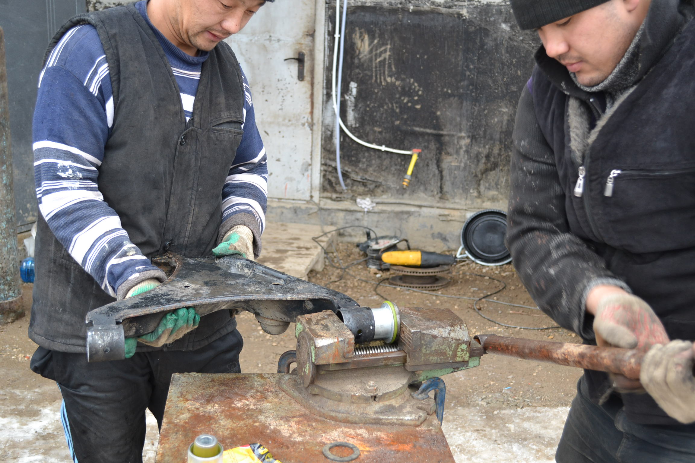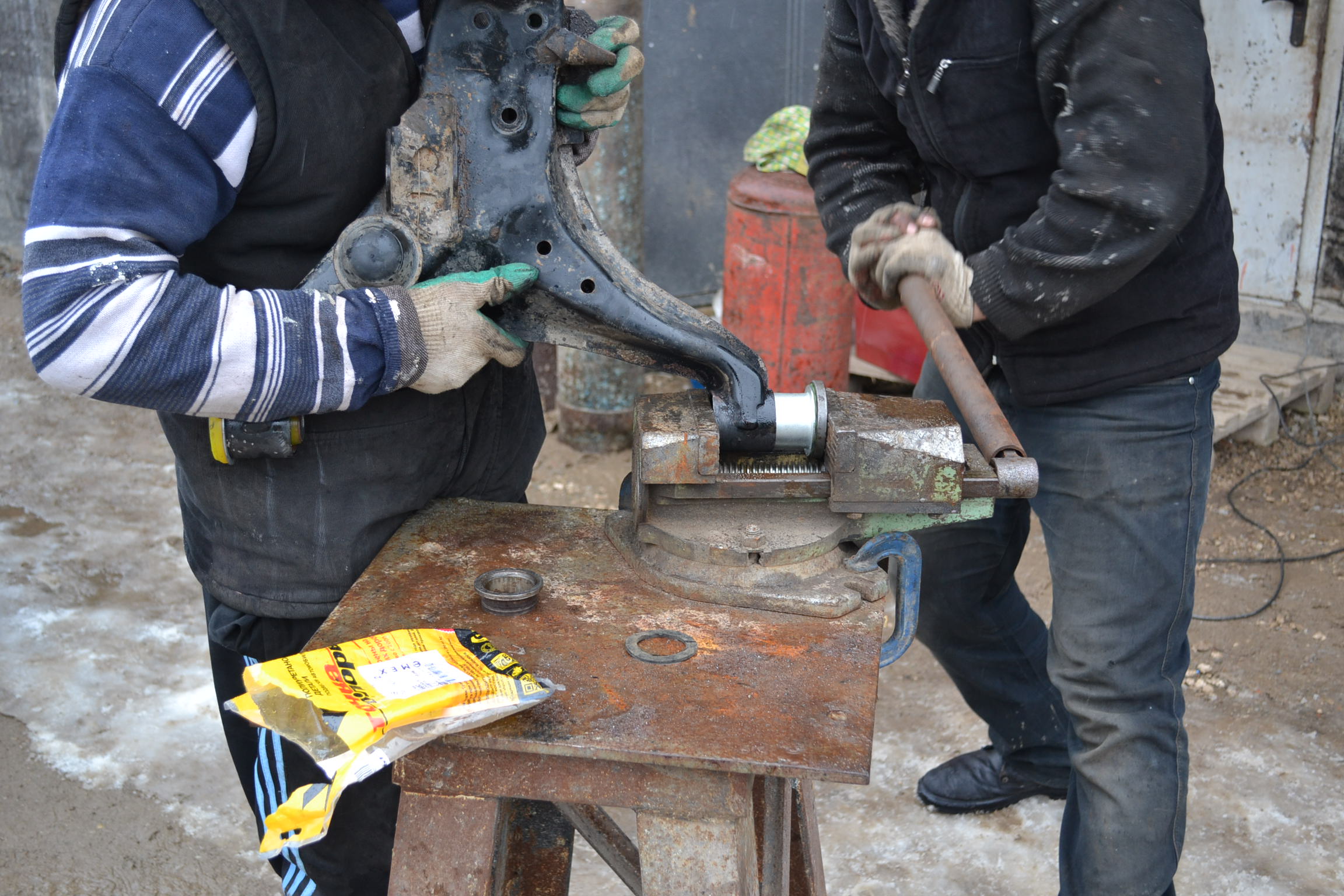 Без ямы. С сабельной пилой, газовой горелкой и тисками. В субботу справа, в воскресенье слева.