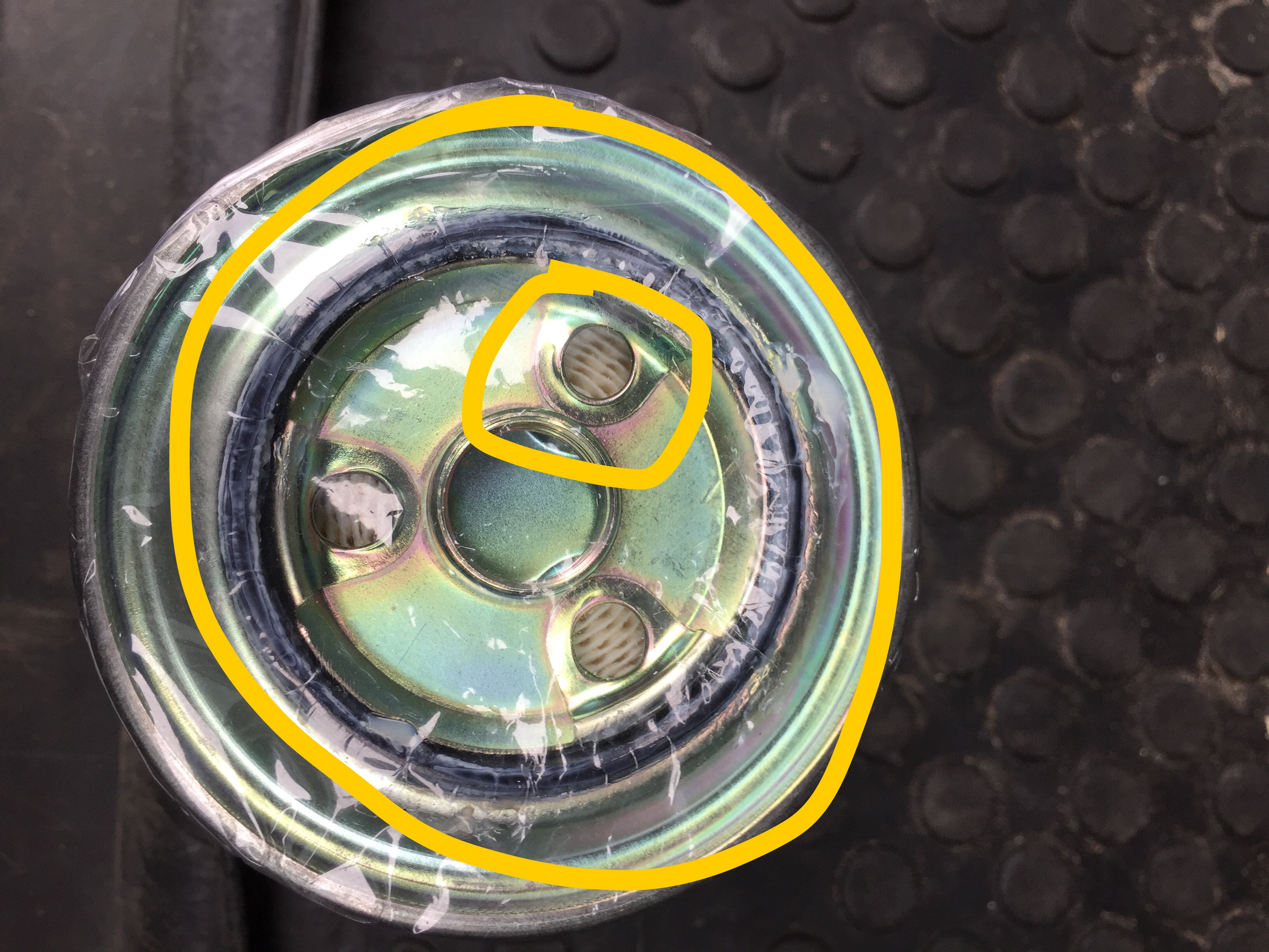 На фото видно предохранительную пленку, так как тут не допускается попадание мусора, ваиду того что это выход на тнвд, эта пленка мягкая, в оригинале идет пленочка натянутая как барабан, хотя польстила смазка на ризинке, это соответствует этим фильтрам. Так же в отверстиях видно сам фильтр, но это не допускает серьезный прлизводитель фильтров, так как есть вероятность повредить бумагу, обчно ее прикрывают сальничком или пластиком, металтческой пластинкой.