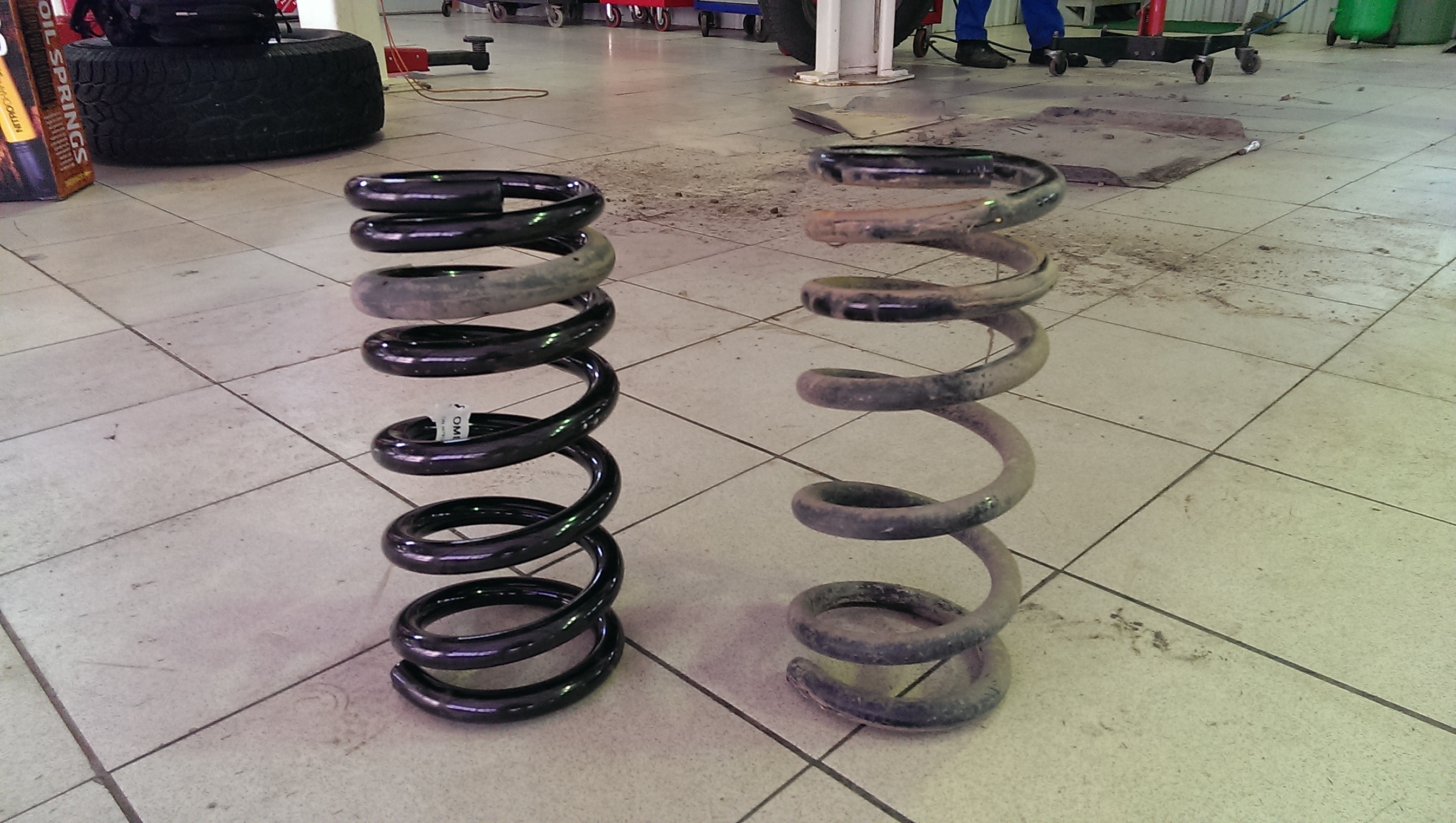 Нашел фото пружин, новая ОМЕ (лифт 2 дюйма) и родная (просевшая на 4 см машина)