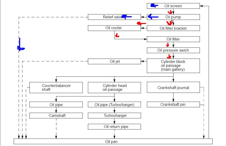 Посмотрел схему движения масла.