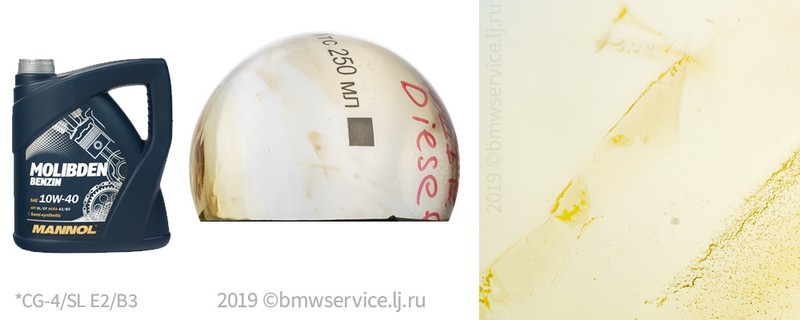 1) У этого масла ожидается высокое щелочное число, потому что оно должно выполнять требования стандарта ACEA A3/B4 и допуска Mercedes Benz 229.5. В итоге так и есть. Щелочное = 10,59. Это нам дает долгую сработку масла в тяжелых условиях эксплуатации. Особенно высокое щелочное полезно тем, что может нейтрализовать плохое топливо с высоким содержанием серы.