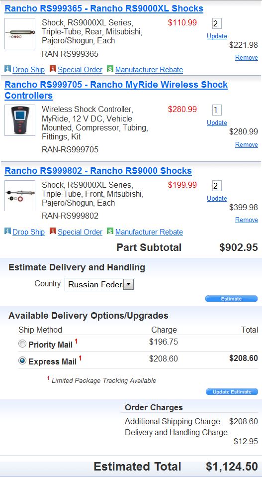 Если бы обычные амортизаторы были бы по мягкости как среднее положение у ранчо может быть и оставил бы старые. С ранчо я смогу выбрать нужную мне степень жесткости для обычного маршрута, что я не смогу сделать с любыми другими амортизаторами. А возможность менять степень жесткости по ходу движения лично мне не нужна (наиграюсь с ней через пару месяцев). По ценам: заказывал на амазоне: передние по 170 баксов, задние по 110 баксов плюс пересылка 200 баксов за все. Будет 760 баксов за комплект с доставкойDelika379 писал(а):Дело в том, что зачем покупать регулируемые амортизаторы , если потом не пользоваться регулировками? На мой взгляд полный бред. Отдать 1500$ что бы иметь что то среднее? Тогда можно оставить родную подвеску. Она так и есть средняя. Если берете амортизаторы за такие деньги , то уж добавьте 500& и полностью наслаждайтесь всем, что в них заложено. Чисто мое видение проблемы.