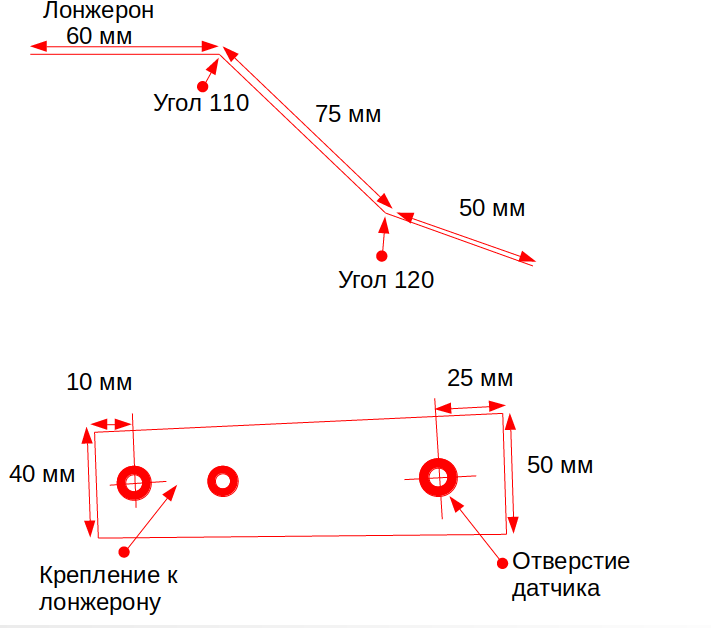 Сегодня готовился к дороге - заодно и померял что получилосьAndreyErmolin писал(а): ↑ общая длина, высота и на каком удалении отверстие датчика, остальное я думаю на месте можно решить