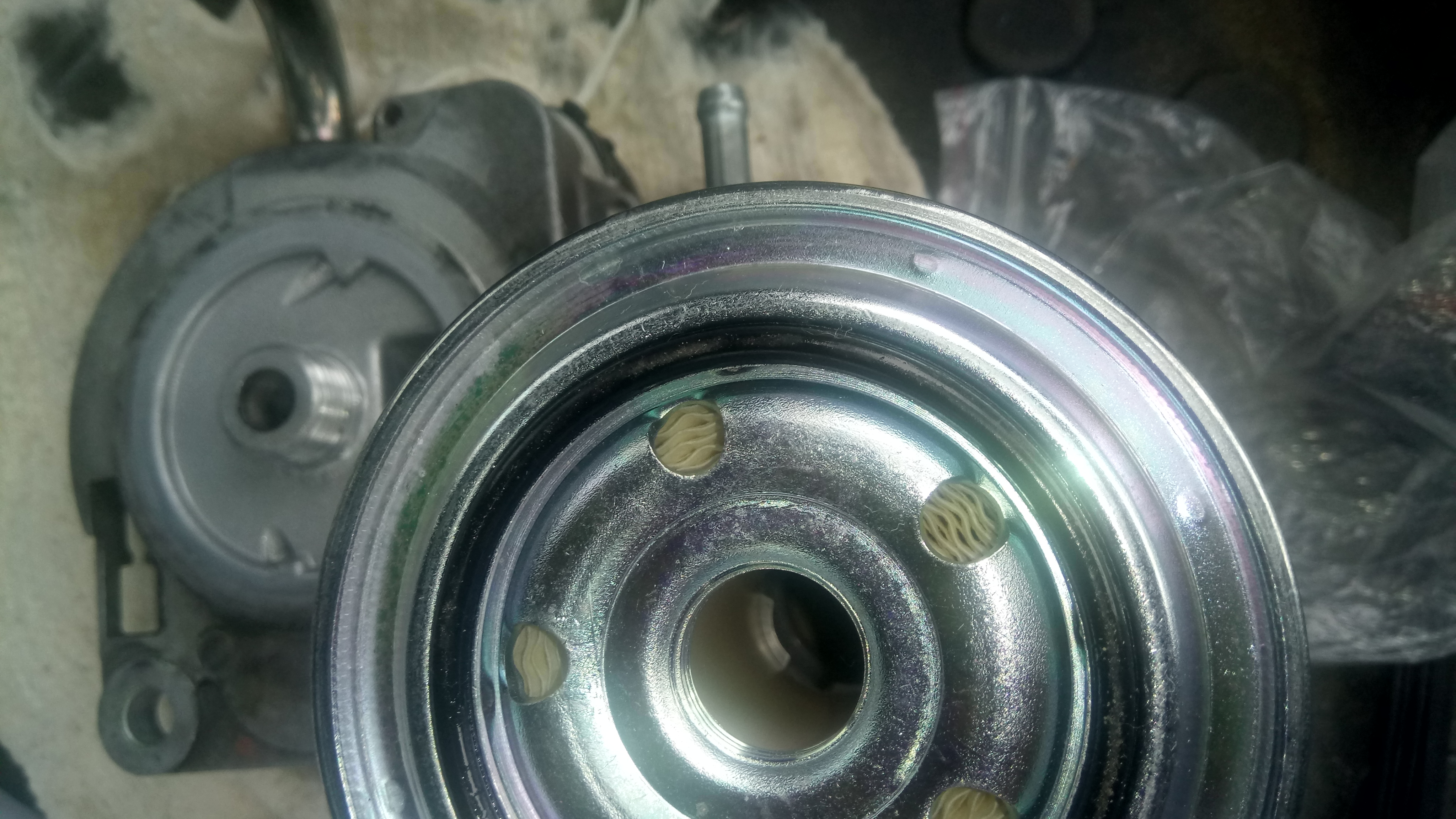 сегодня ставил новый топливный фильтр оригинал (26,5 долл). ставил уже в третий раз, но в этот раз лопухнулся и пишу об этом, чтоб другие не наступали на эти грабли. Входная (и резьбовая ) часть фильтра закрыты полиэтиленом, оберегающим так же выпадение резинового уплотнения с плоскостью "головы" фильтро держателя. Для того, чтобы бастрее заполнить новый фильтр топливом, я со снятого стал наливать в него солярку. солярка попала обильно на резиновое кольцо, а оно было смазано густоватым светлым маслом. естесно, соляр подрастворил масло. я вытер пролитую соляру и также стер масло. кольцо, поскольку имеет размер несколько меньше, чем канавка для его нахождения - стала выскакивать из канавки. как я его ни укладывал - все одно ровно в канавке не лежало, стремилось частью выскочить. кое как вроде уложил и стал навинчивать фильтр на голову. вроде нормально легло. стал прокачивать ручным насосиком: что то долго качает... смотрю, а соляр выходит в месте контакта фильтра и плоскости головы и уже лужица под авто.. значит кольцо не легло правильно. открутил: кольцо несколько закушено, но не порвано. снял кольцо из старого фильтра - все равно не держится в новом и тепереь и старой кольцо не держится в старом фильтре. никак не держится! насухо вытер бензином кольцо старое, канавку нового фильтра , нашел похожее масло и им как бы приклеил старое кольцо в канавке. излишки масла стер. закрутил фильтр- на этот раз протечки нет.