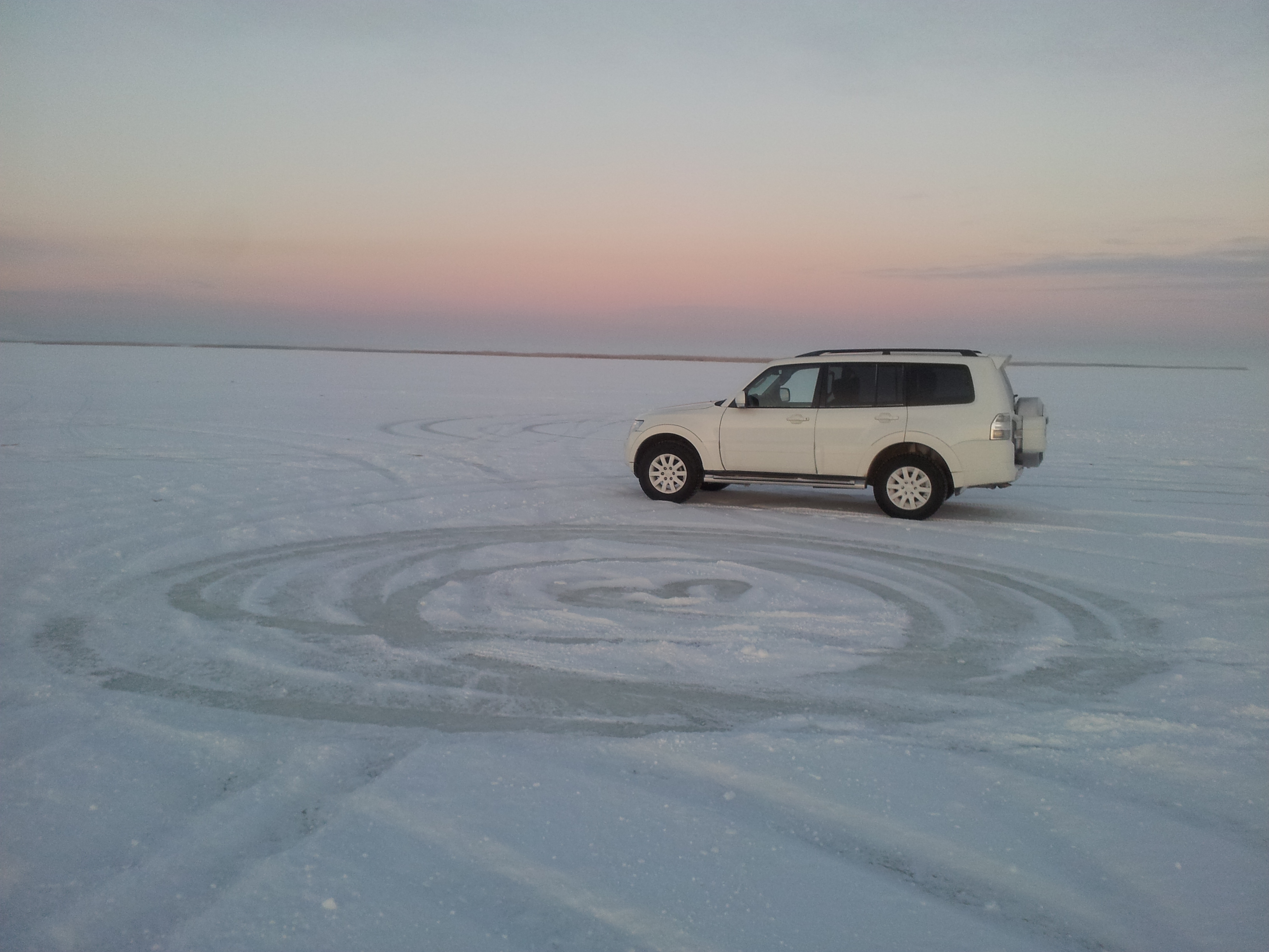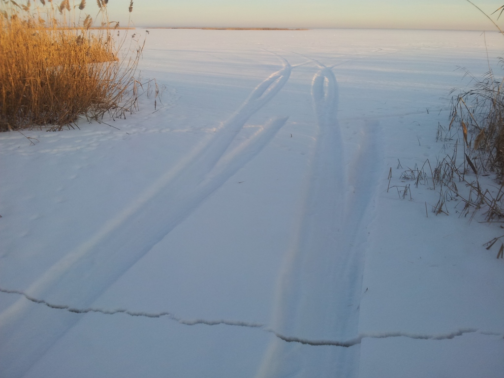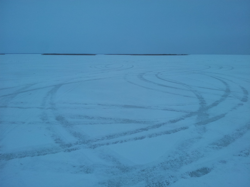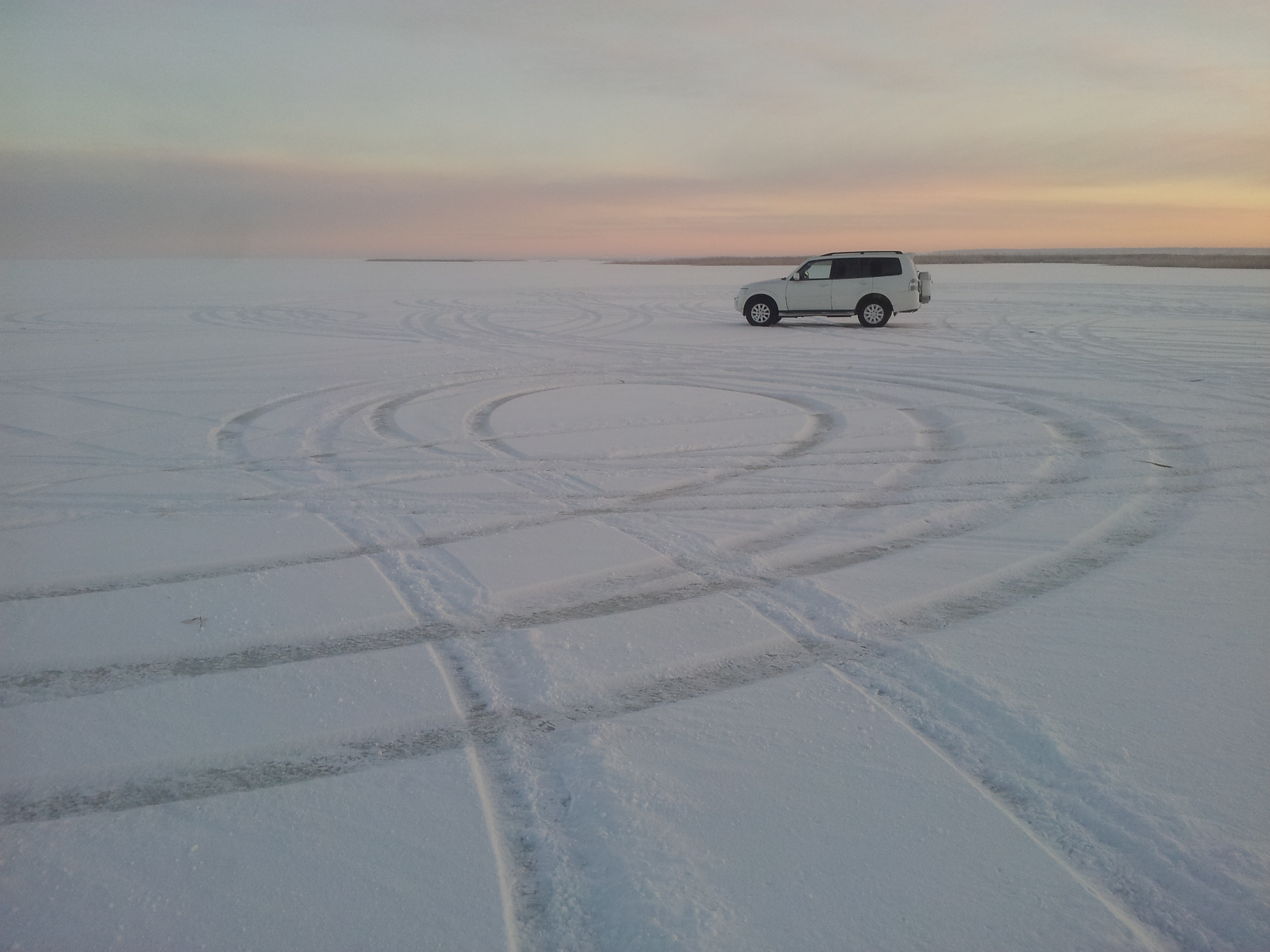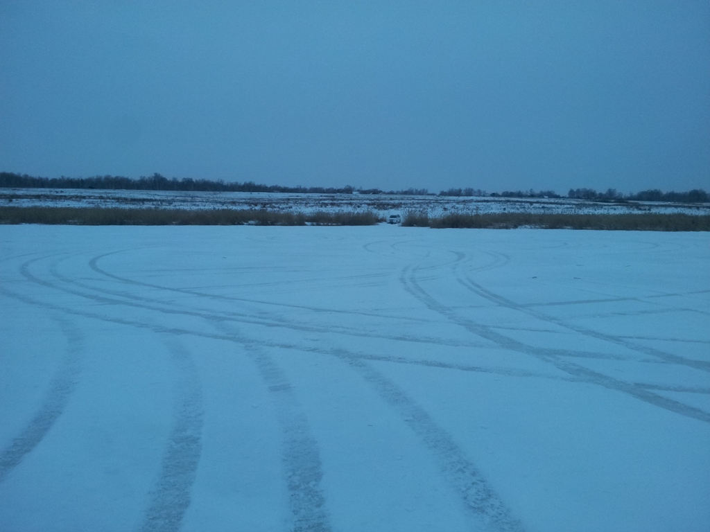 Нарезал традиционную учебную трассу экстремального вождения на ближайшем озерке с толщиной льда 400 мм.