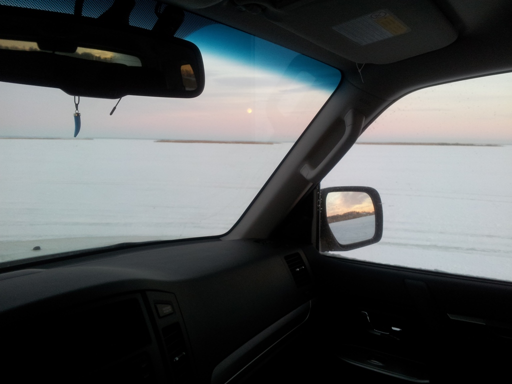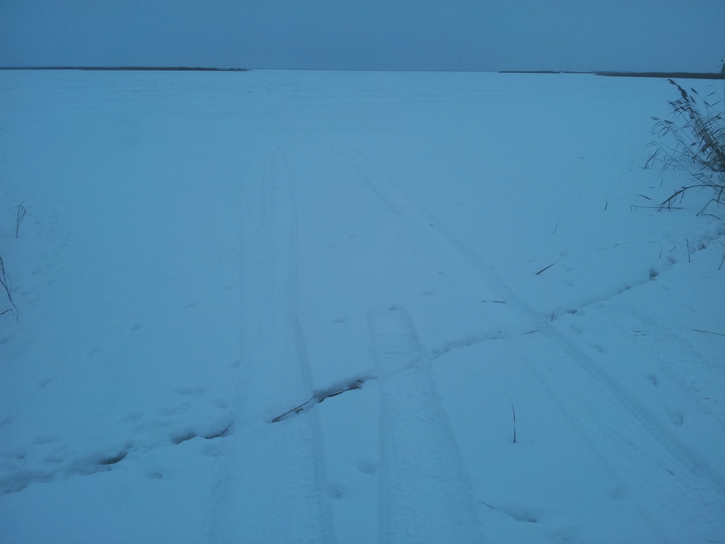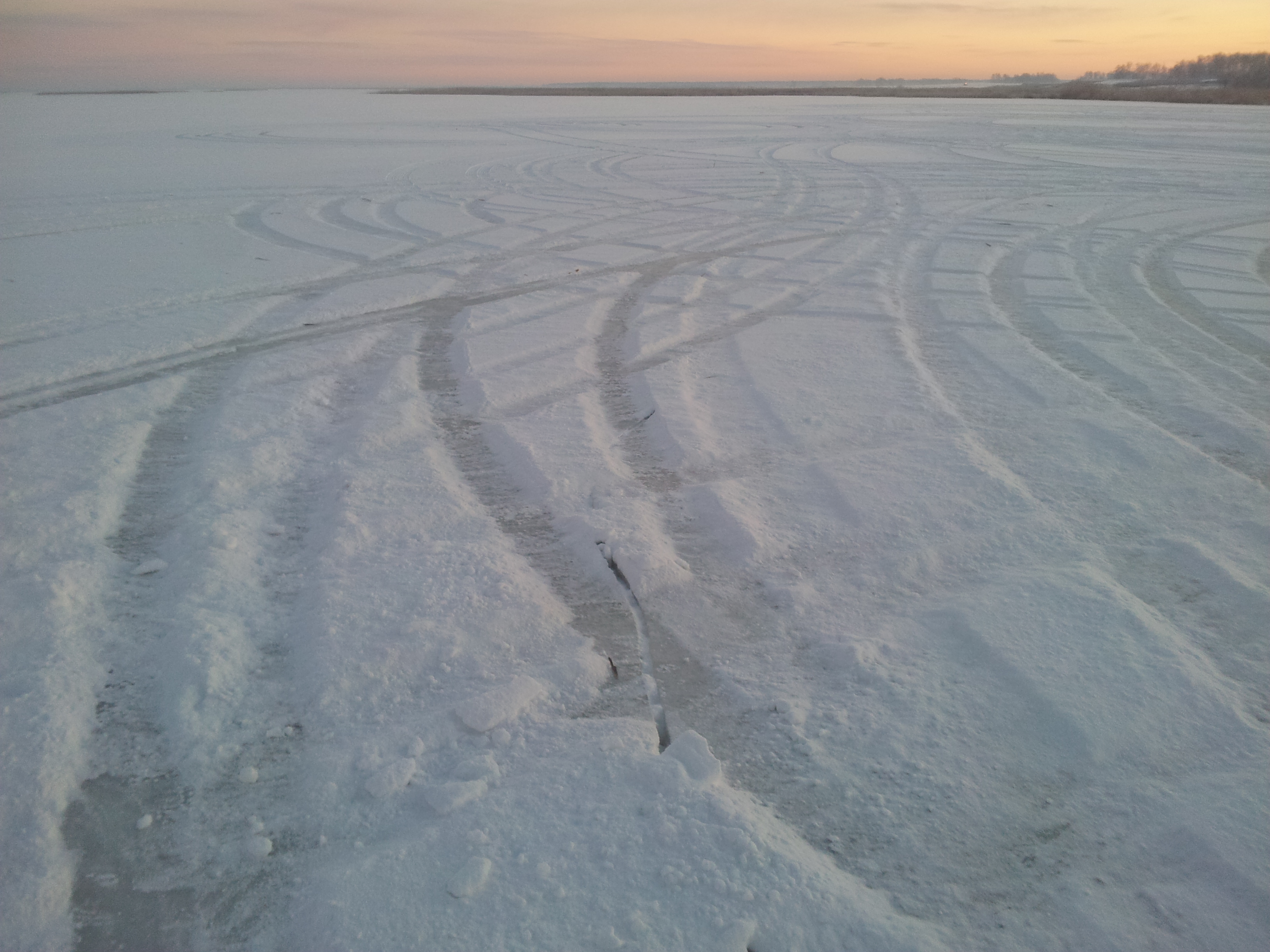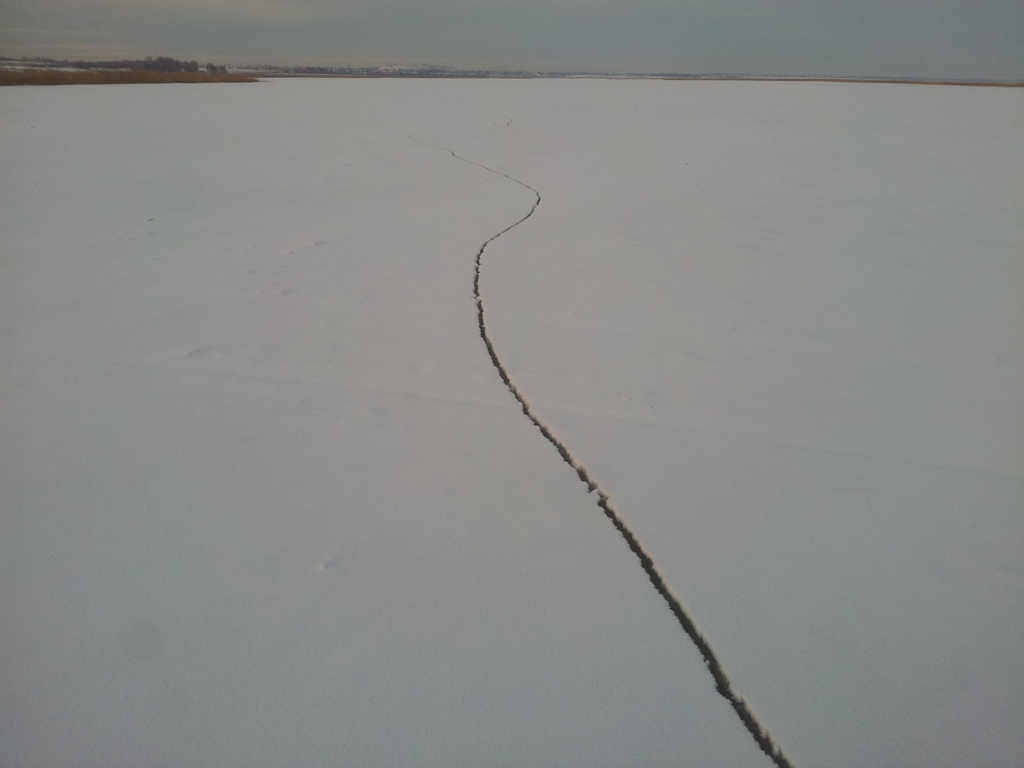 Оставил БАРБОСА на берегу и пошёл смотреть. Трещины оказались не опасными, но пока вернулся к машине стало уже совсем темно.