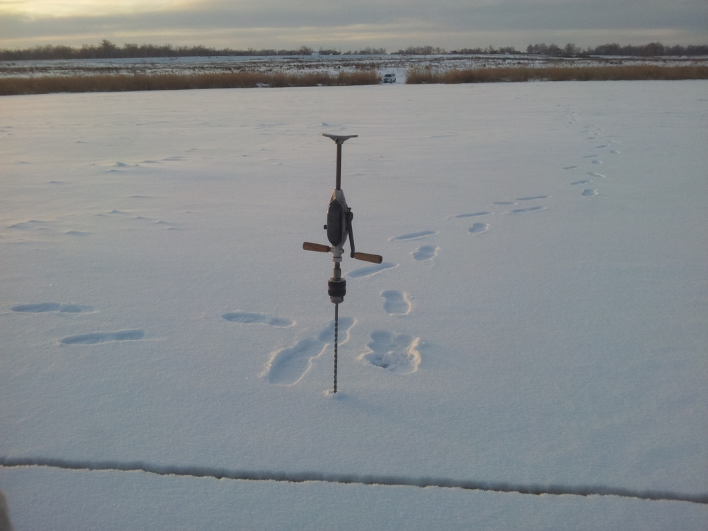 Сегодня достал до воды другим буром..., толщина льда 500 мм, это на транспорт в 15 тонн
