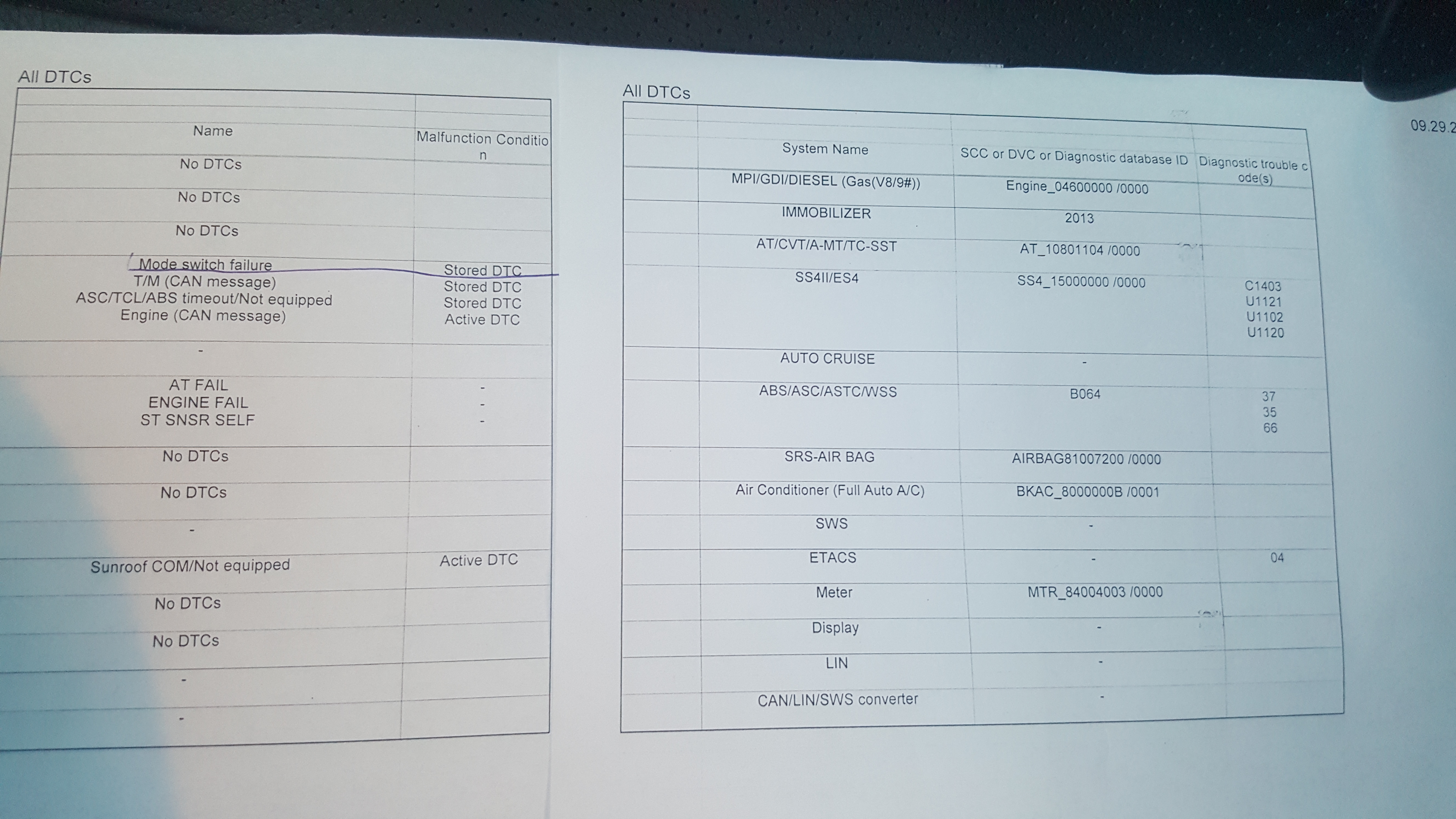 Ниже фото чек листа. Не нашел инфы по ошибке С1403, может кто подскажет?