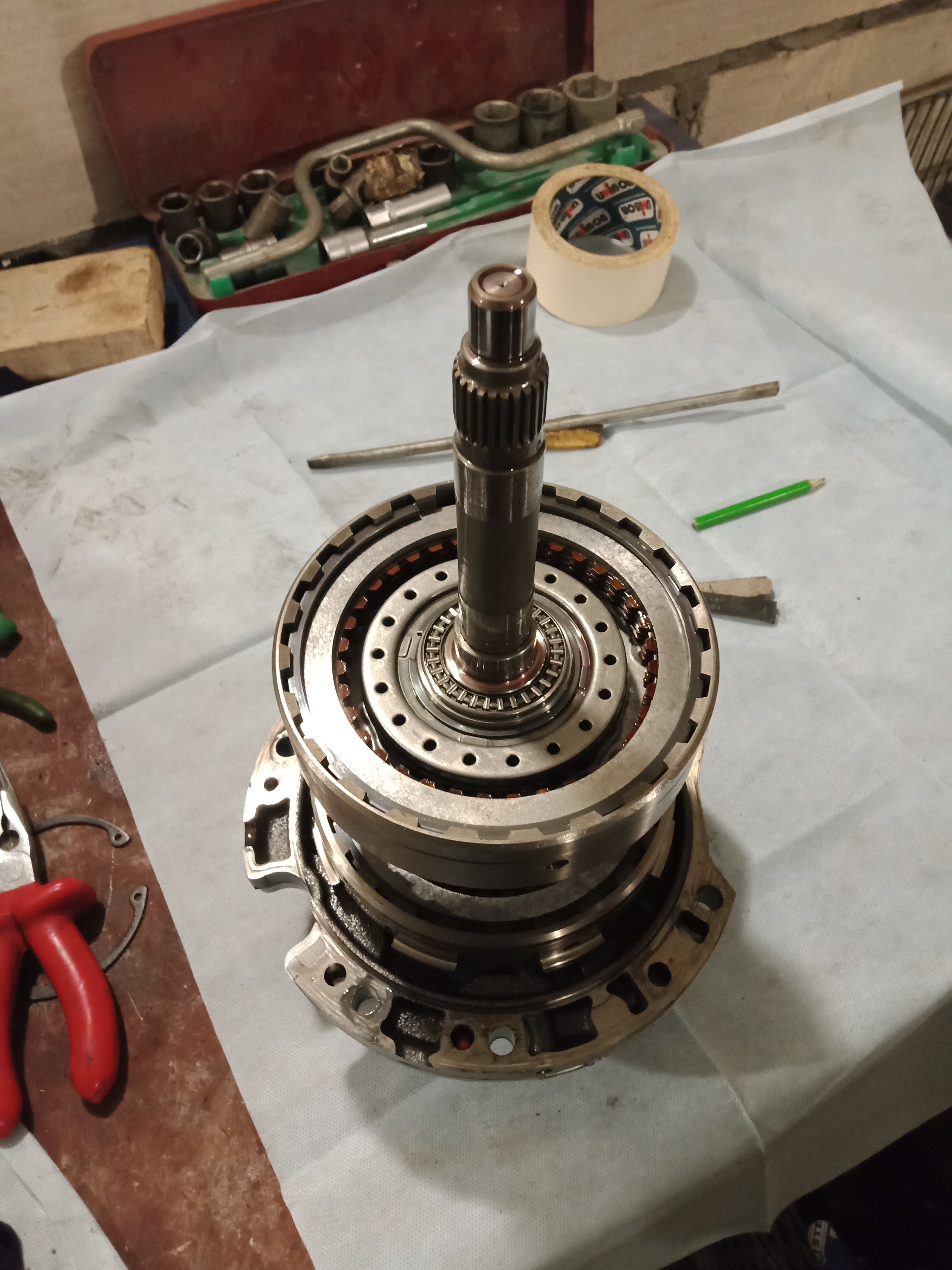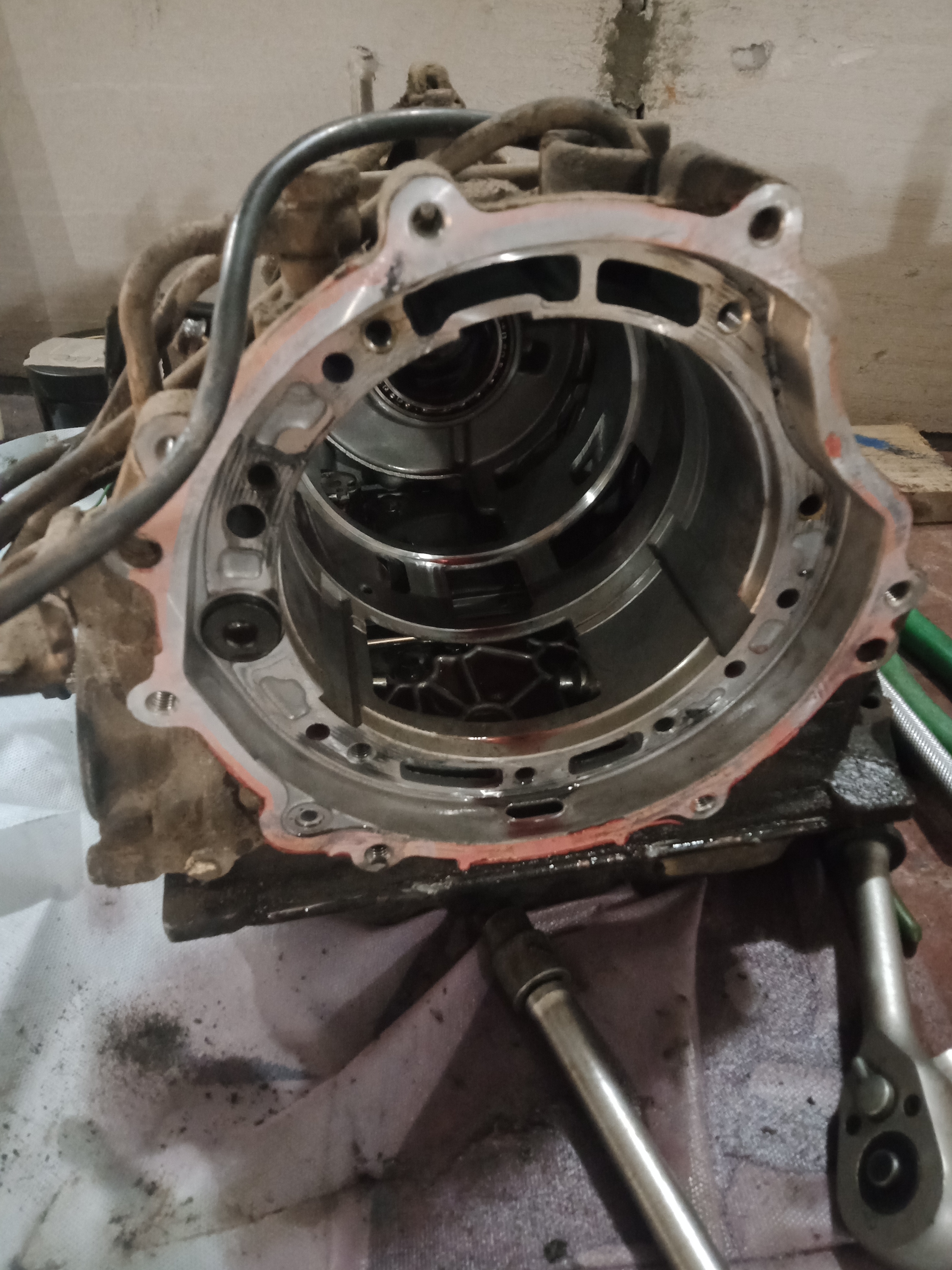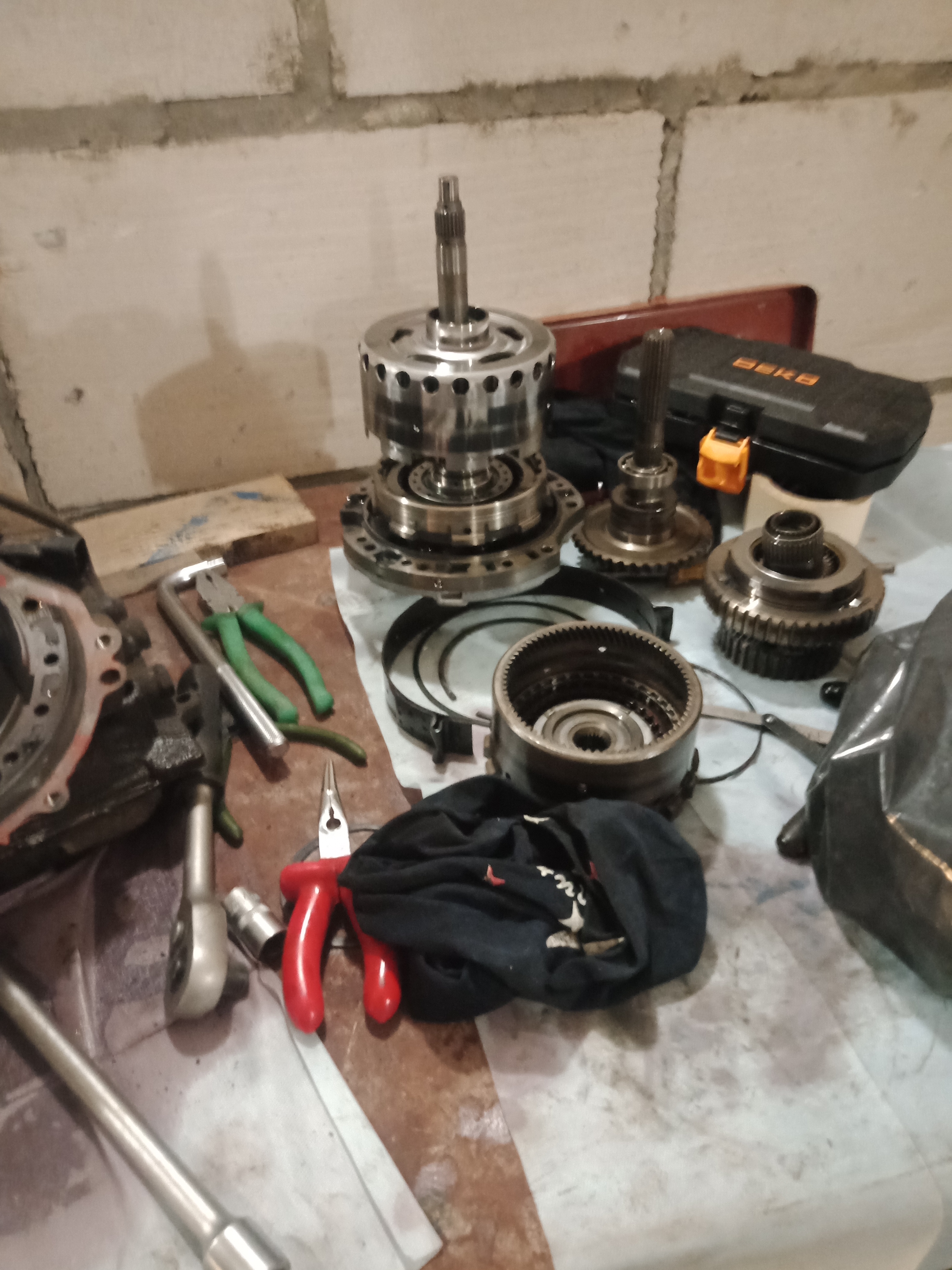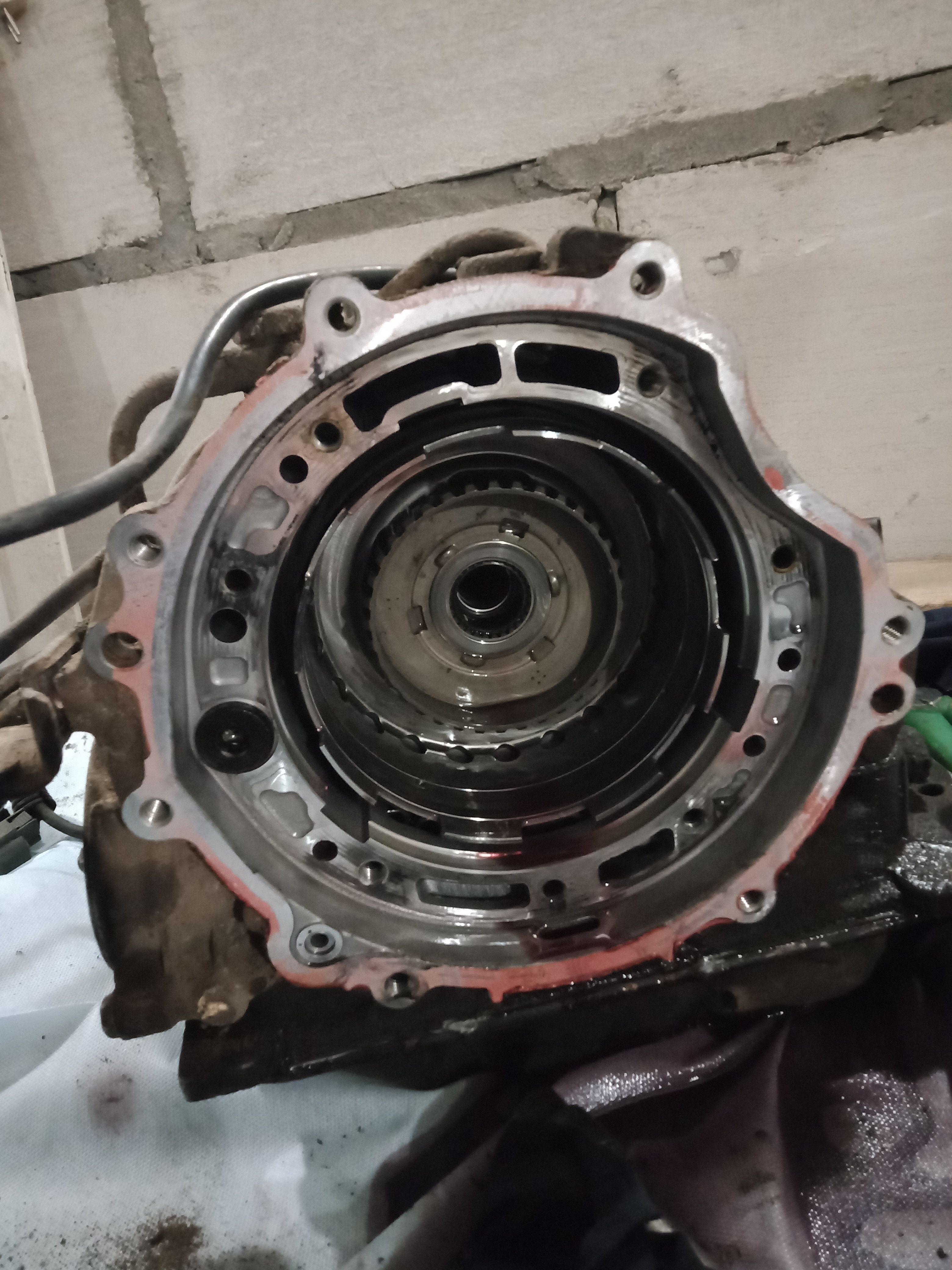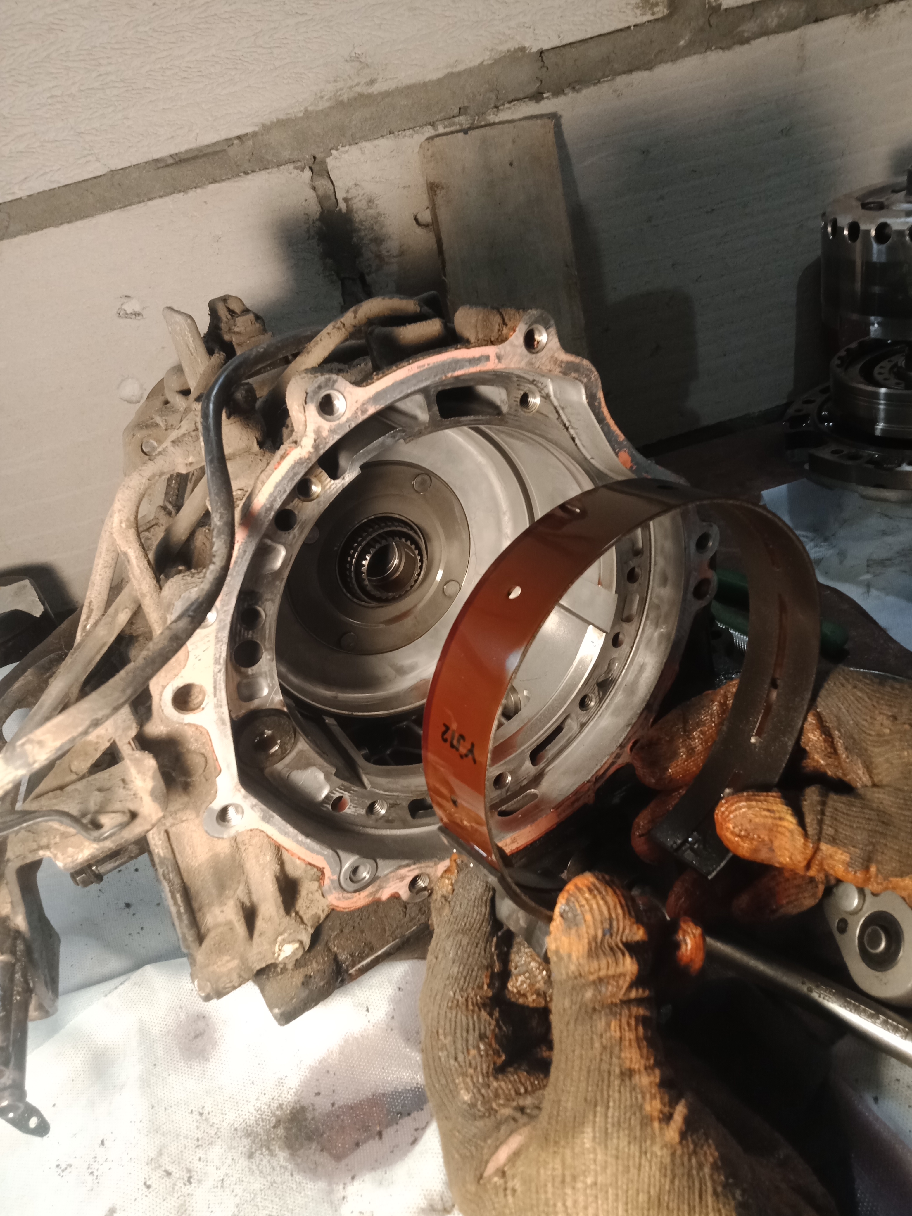 Один фрикцион стерся полностью, решил его выкинуть из пакета и компенсировать зазор самодельной пластиной толщиной 4 мм. Сделал все замеры стального кольца, сделал чертеж в автокаде и отдал на лазер. С манжетой было сложнее... Штатная прямоугольного сечения, такую не найти, заказывать долго, решил поставить круглую (колхозить, так по черному)), Поехал в магазин гидравлики, подобрали прямо там все манжеты, сразу и на поршень сервопривода тормозной ленты. Гидроблок тоже вымыл с полным разбором... Дальше фото в хаотичном порядке...