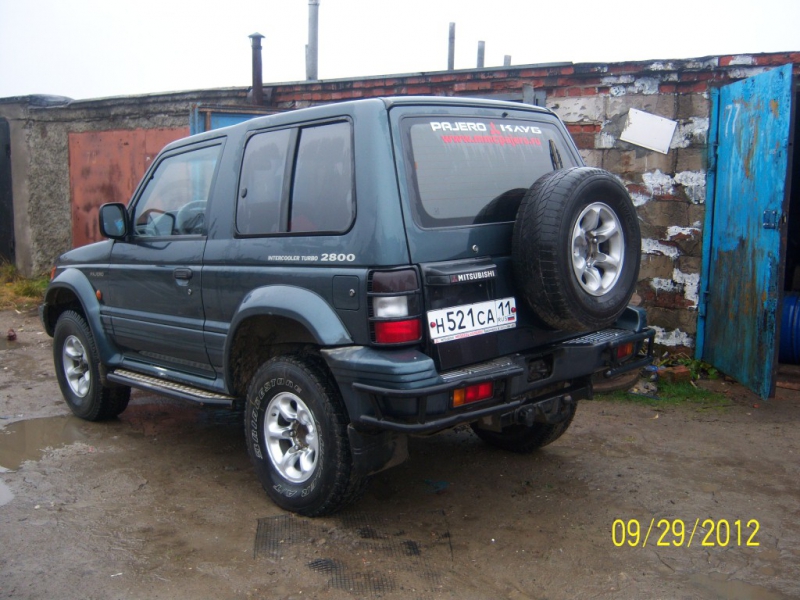 Продам Мицубиси Паджеро 2, 1995 г.в., темно-зеленый, двигатель 4М40 (2,8тд), пробег 281 тык. КПП механика, 3-дверный. Январь 2012 - замена блока двигателя. СТОшкам не доверяю, менял сам. Новое: клапана, цепь ГРМ (комплектом), плунжер ТНВД, шаровые, крестовины карданов, чехлы (шили на заказ). Подогрев зеркал, дворников, вод.сиденья. Заменены масла в трансмиссии. Саб под сиденьем. Цена - 330. Второй комплект дисков. Торг есть.