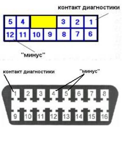 У меня 12-ти контактный. Так диагностировать уже попробовал. Правда вместо светодиода подключил вольтметр. Вольтметр дает постоянные одинаковые колебания стрелки, что, как я понимаю, соответствует отсутствию кодов ошибок в памяти. Для эксперимента пробовал снимать фишки с датчиков положения дроссельной заслонки, считалки воздуха и температурного датчика. Но "СНЕСК" на панели все равно не зажигается и кодов неисправности комп не выдает...
