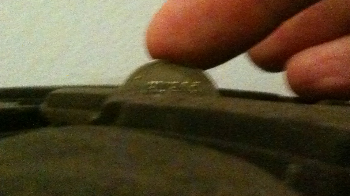 По просьбе OreSHik выкладываю фотки с монеткой. Глубина протектора по надпись "Рубль" на 1 рубле. Это 14-15 мм. остатка протектора при новой резине 17мм.
