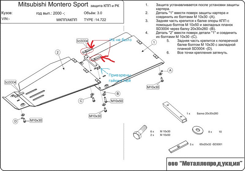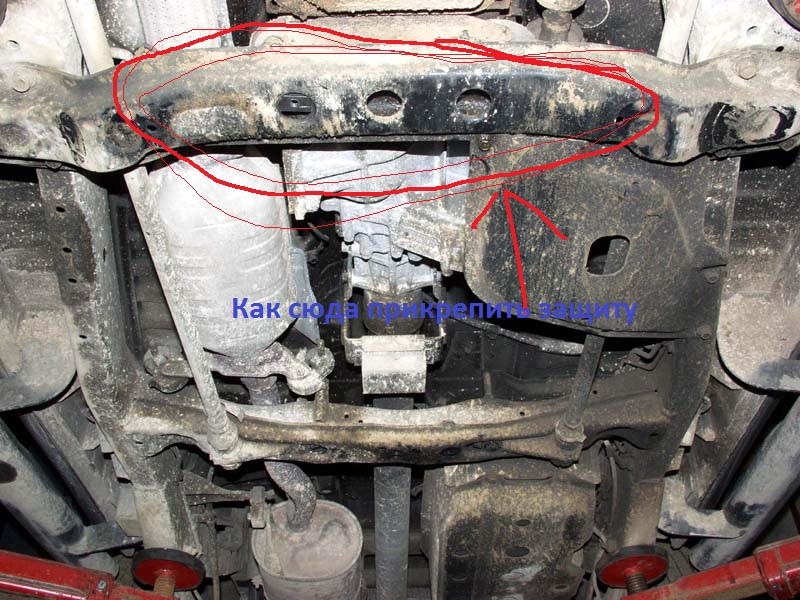 Такая же проблема. в балке опоры КПП нет снизу никаких отверстий. Куда вставлять закладные пластины и как крепить лист защиты в этом месте?
