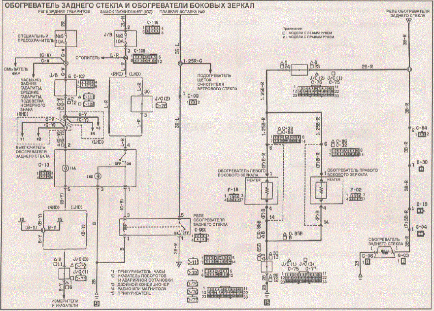 При не работающем моторе обогрев заднего стекла не включается. Схема это объясняет. Остаётся найти таймер, рэлюху и провод между ними.