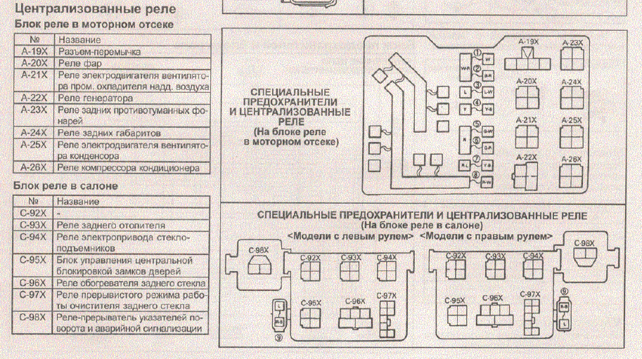 Судя по книжке, в блоке реле есть реле генератора A-22X - это оно?homa70 писал(а):В блоке предохранителей под капотом есть реле зарядки, там появляется плюс после запуска двигателя.