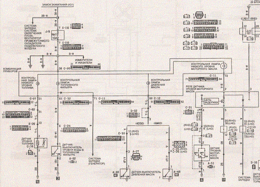 вот схему нашел, только она не очень разборчивая..владимир михайлович писал(а):Посмотри все же на схему включения конрольной лампы давления масла.