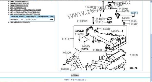 Значит это: (map датчик) барометрического давления в цепи за него отвечает ошибка р0107 -(плохой контакт в разъеме, замыкание или обрыв в цепи). на 6g72 и 6g74 он стоит на коллекторе как показано на рисунке.