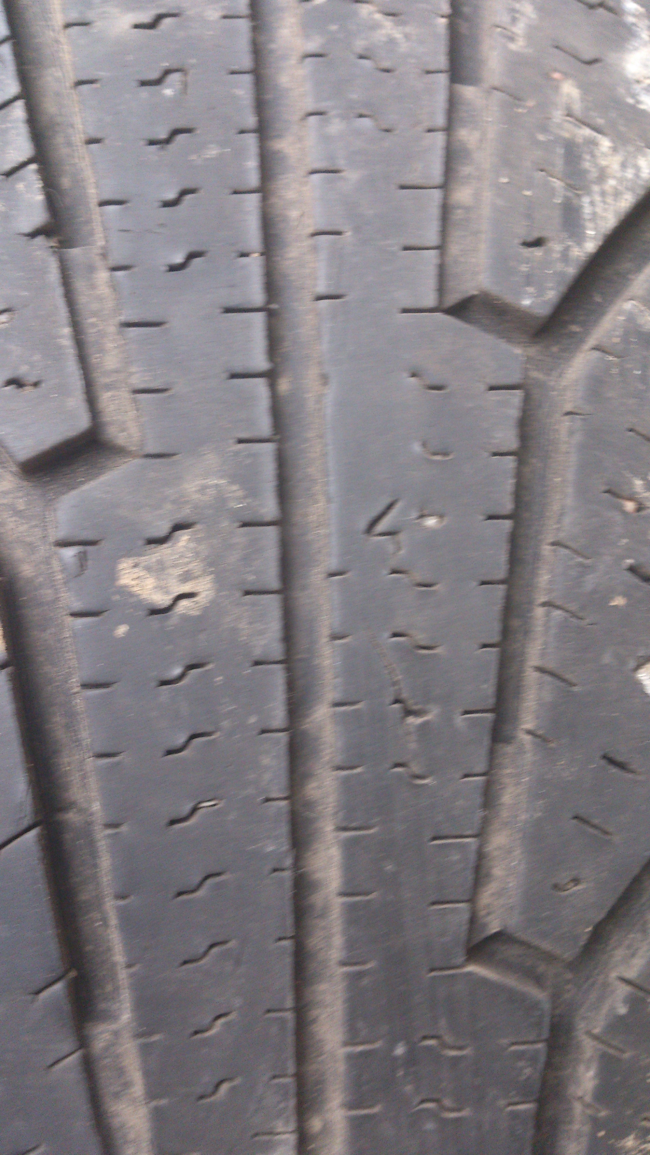 На трех шинах на индикаторах износа видны 4, а четвертое с подъеденой серединой, из-за перекачки колеса.