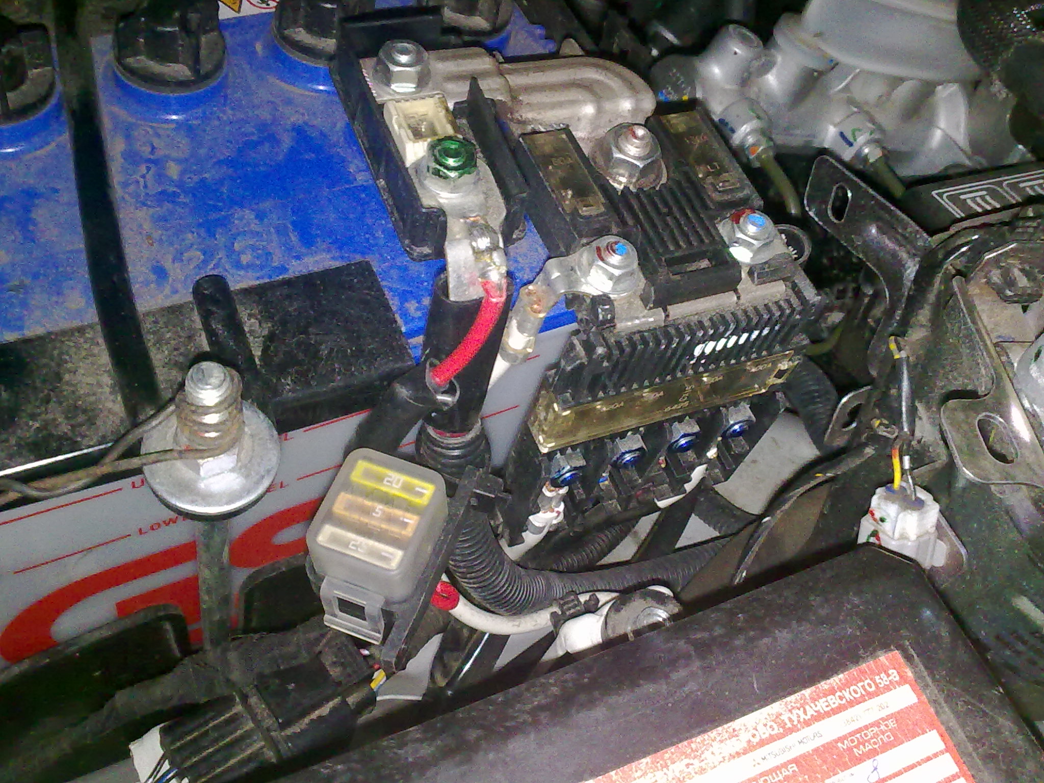 Подключение к топливопроводу, т.к. был установлен фильтр Separ то врезка делалась в выходной шланг после него, здесь сложность была перейти с трубки 12 мм на 4мм, т.к. тройника не нашлось, то был взят тройник 12мм, фитинги Ниппель для трубки 2601 12-1/4 и Ёлочка 6мм, F1/4" и получили переход 12мм-4мм Подключение и размещение шланга для подачи воздуха. Был добавлен фильтр картерных газов prosport, случайно найденный в автомагазине, для того чтоб можно было пользоваться подогревателем на ходу. И был размещен за эмблемой mitsubishi , на кронштейне Выхлопная труба - глушитель был закреплен на перекладине (вроде как усилитель бампера), сверлилось отверстие, и еще добавлялась трубка (как шайба) между перекладиной и глушителем, и выход выведен возле крюка Подключение к электрике - т.к. для работы мне нужно было только 3 провода, (+12, -(корпус), вывод включения), вентилятор салона не использовался. Длинна штатных проводов была огромна около 2-2.5 м, то было принято решение расплести все жгуты и оставить только нужные провода