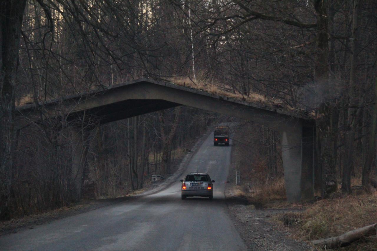 Интересное сооружение через лесную дорогу Заброшенный КПП на границе Польши и Чехии 18:50 (1950 км) – прибытие в Братиславу.