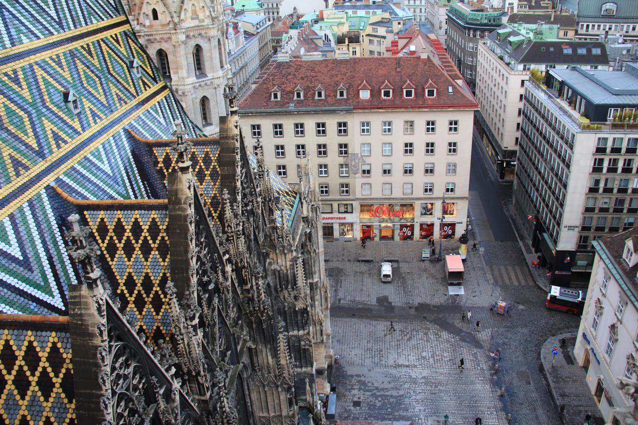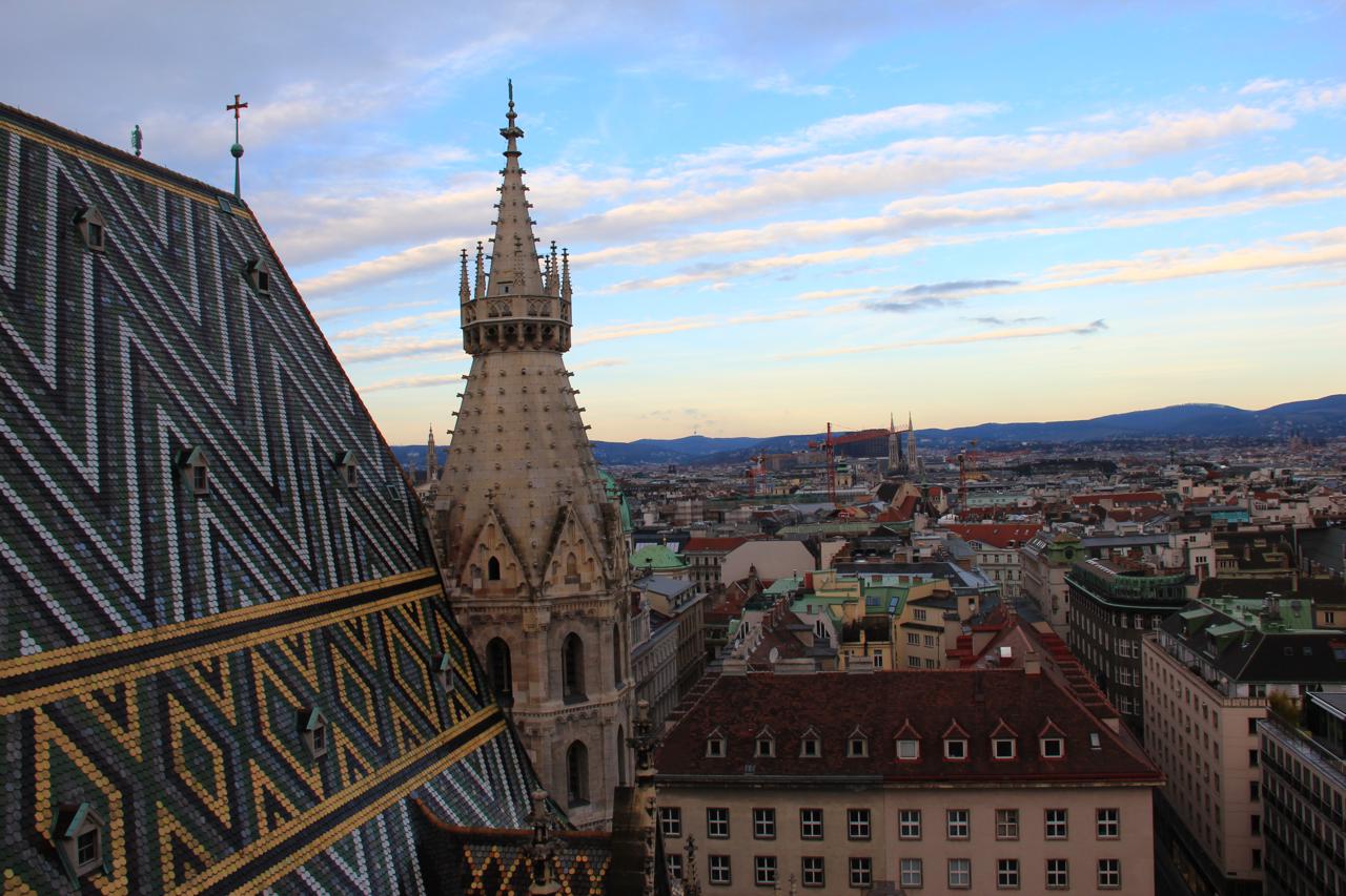 День начали с осмотра главной достопримечательности, а именно Собора Святого Штефана: Потом поднялись на крышу собора, вид оттуда на город потрясающий: