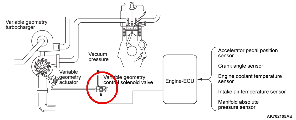 Variable geometry control solenoid valve circuit high input