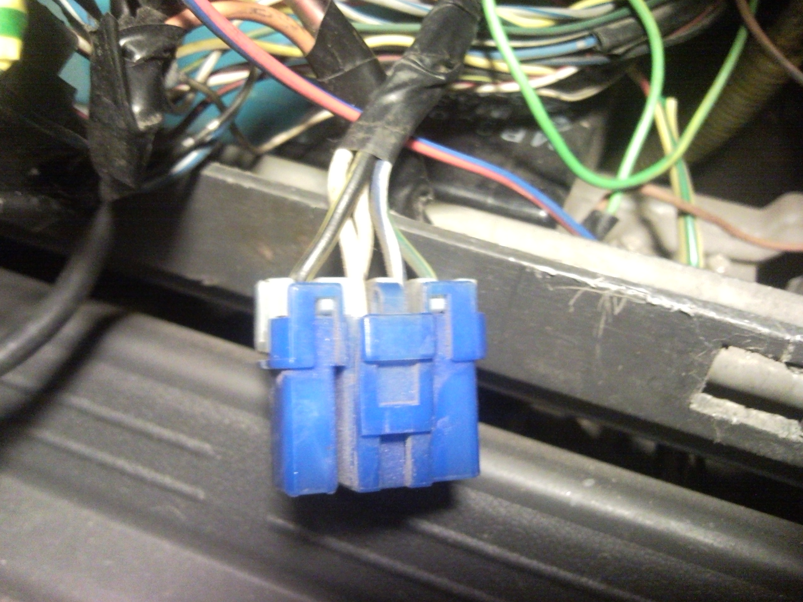 Вот разъём пошел по проводам ,два белых ушли к отключенному разъёму синего цвета ж/б к откушенному концу в синей изоленте остальные идут в толстые жгуты под щиток приборов