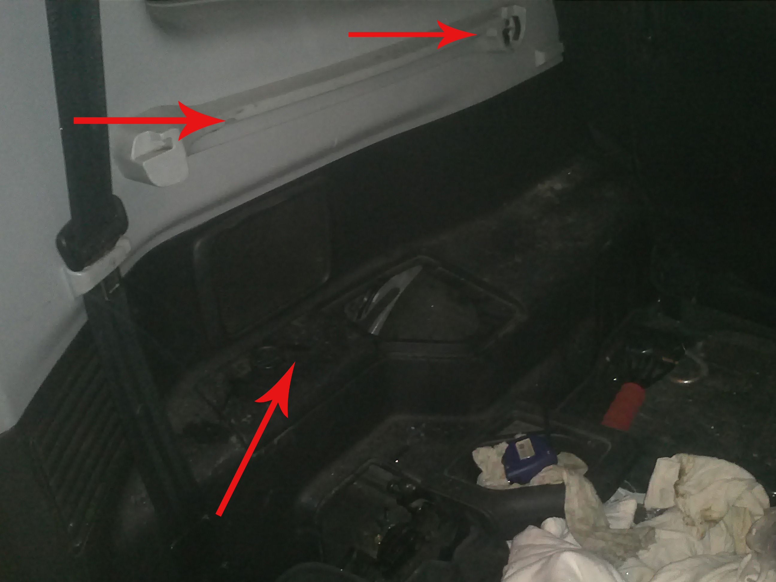 У тебя еще и шторка багажника есть, стрелками показал где два винта находятся, выкручивать длинной крестовой отверткой.