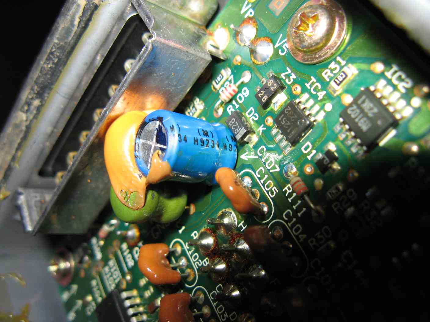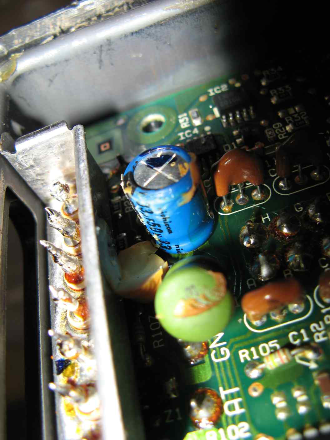 На второй кондёр (что не выпаял) забей, он танталовый, они не сохнут.Примеры отклонений от нормальной формы сигнала