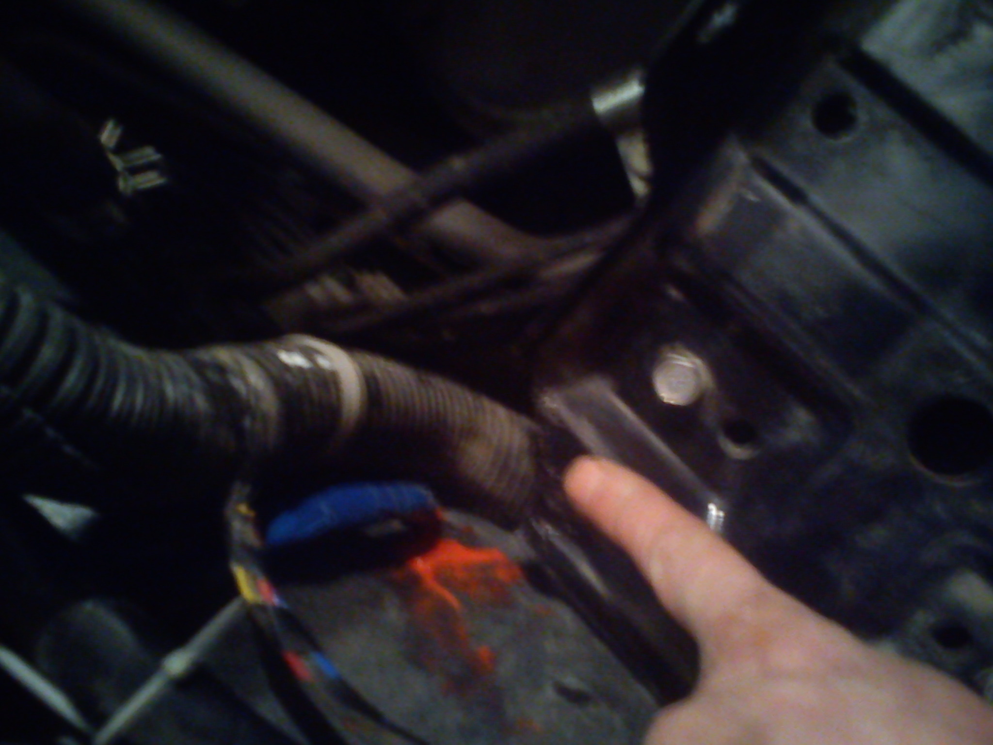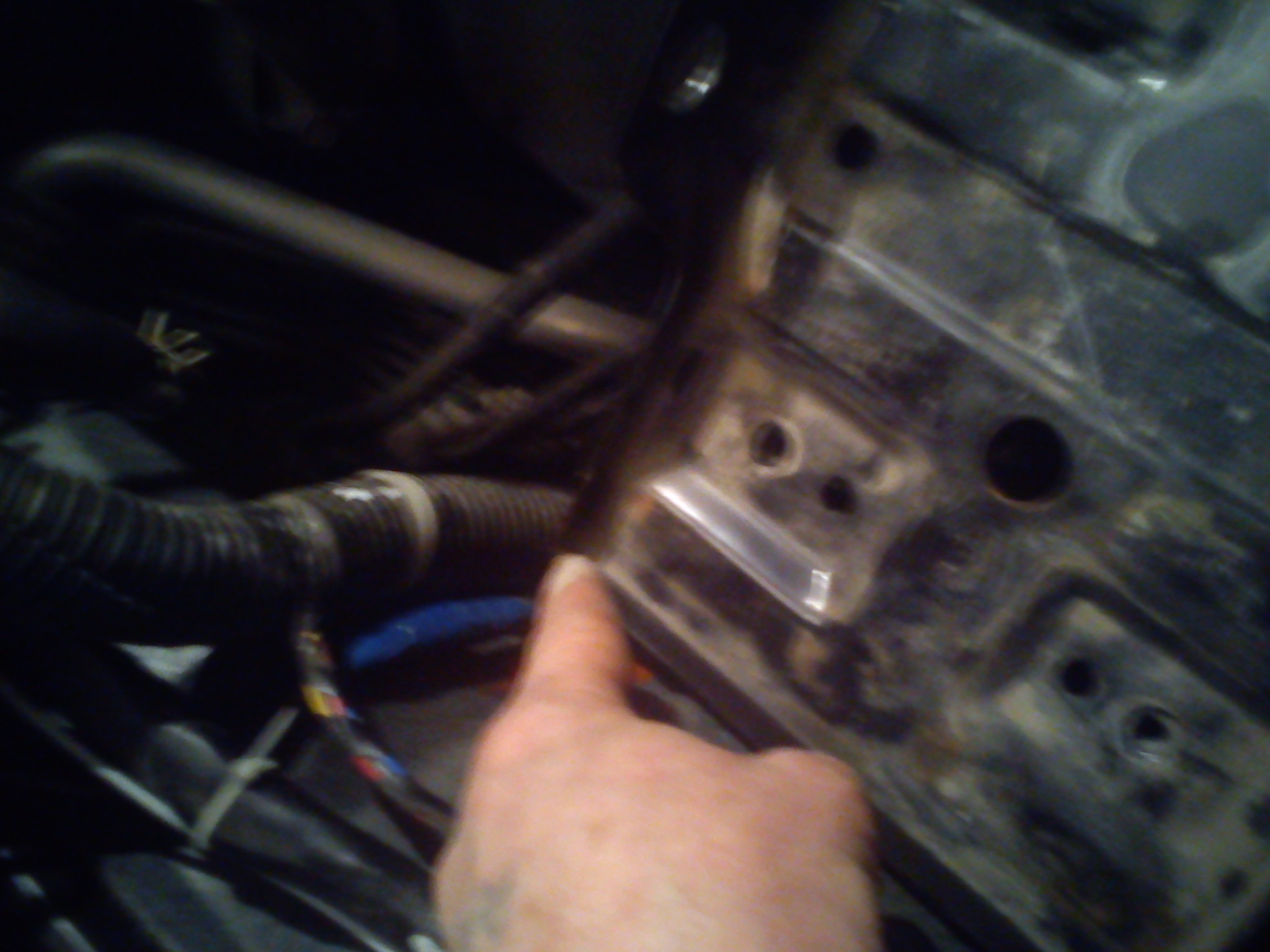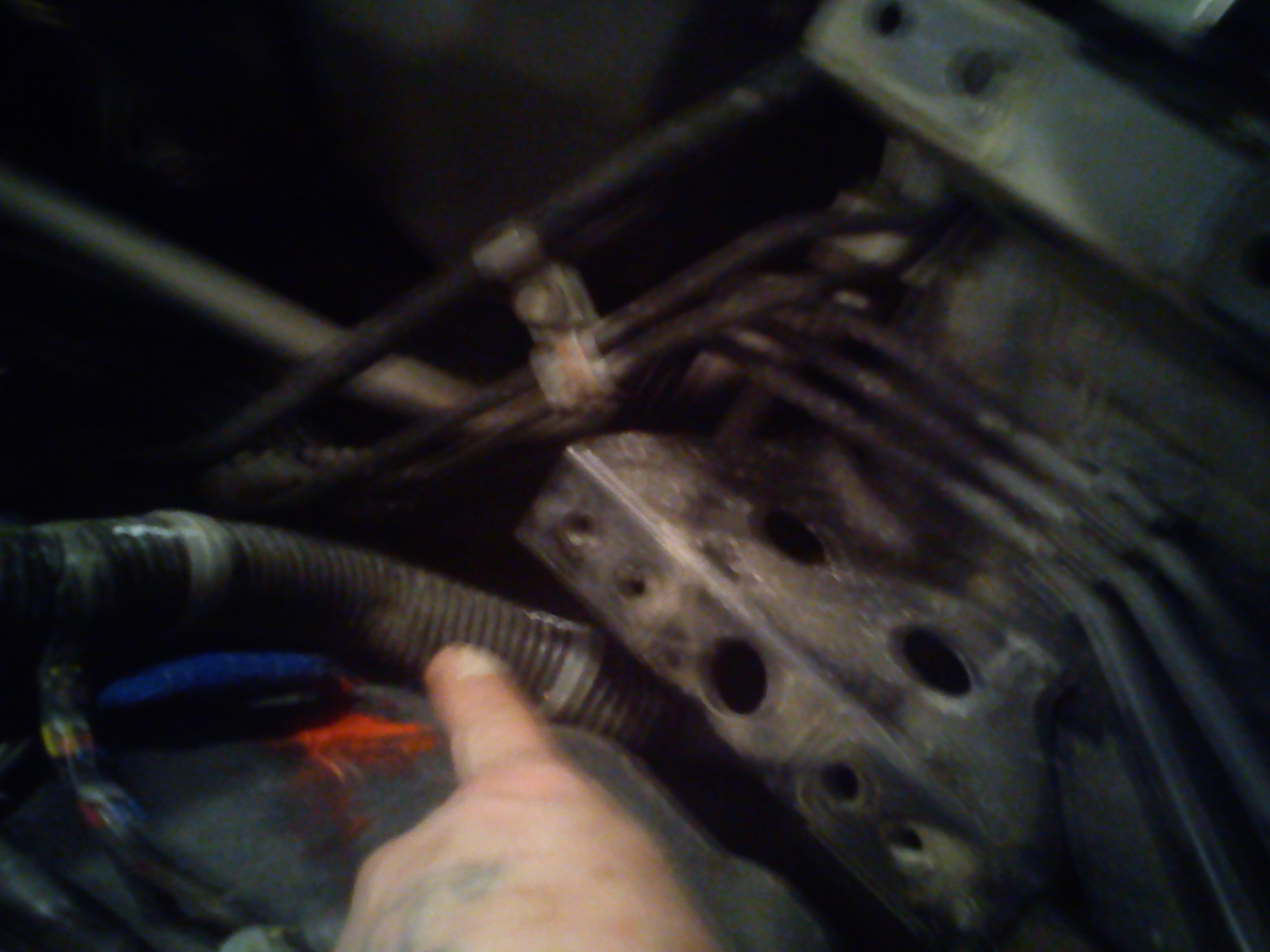 Посмотрите может кому пригодится.На днях начал внедрять эл.обогрев задних пассажиров(при этом пытаюсь откл.штатный эл.фен)Для протаскивания проводов из под капота в салон,пришлось снять правый АКБ.Увидел что площадка под АКБ свои углом упирается в толстый жгут проводов и за 40 тысч порядком помяла провода.Снял площадку и отпилил лишний угол.