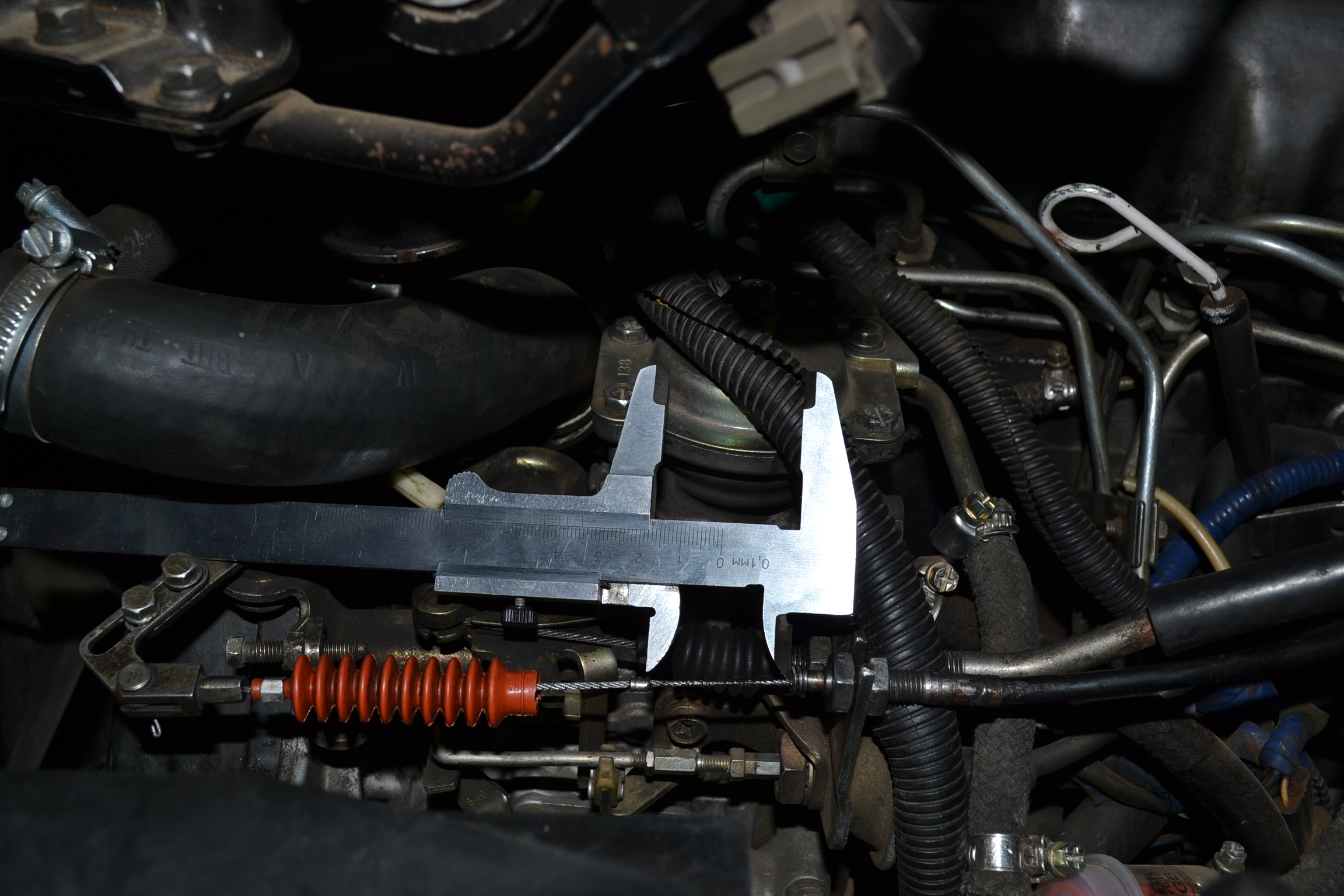 Закручиваю левую гайку отпуская правую трос начинает провисать даже в крайнем положении планки.35мм установить не получается Передачи начинают переключаться после 3000 или педаль газа приотпустишь.Двигатель от Делики, смотрел родной топливный насос привод на трос один в один.Трос визуально не растянут.В отпущеном состоянии бабышка доходит до упора в гильзу, ролик в коробке тоже до упора.