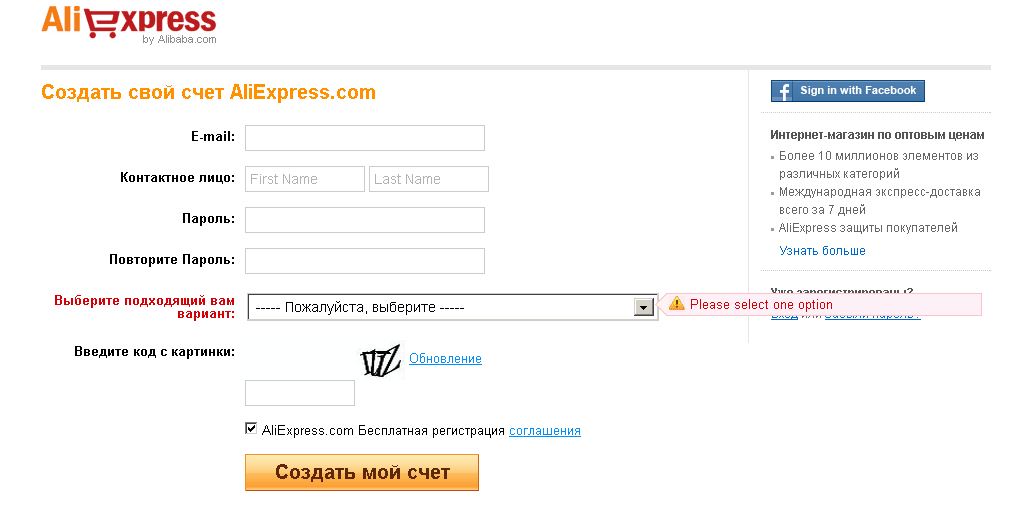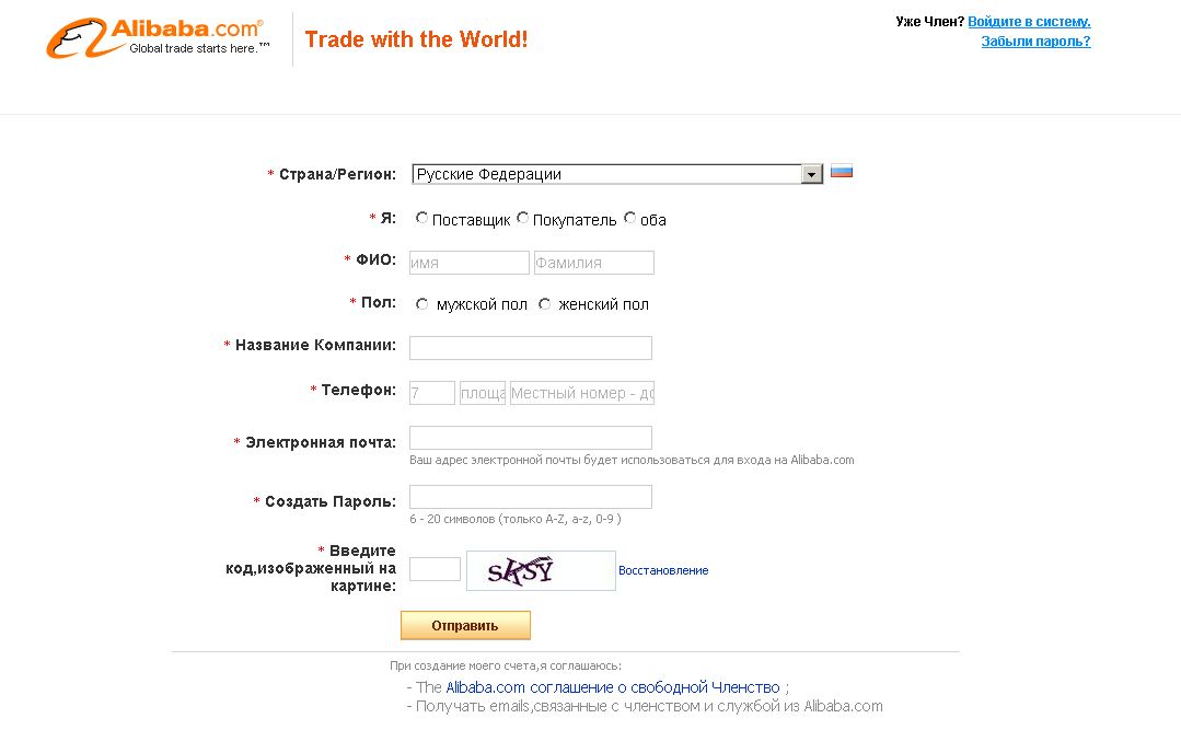 https://login.alibaba.com/xman/join/glo ... _index.htm Заполняем все поля на английском языке. Для этого лучше в браузере открыть переводчик - http://translate.google.com/#en/ru/