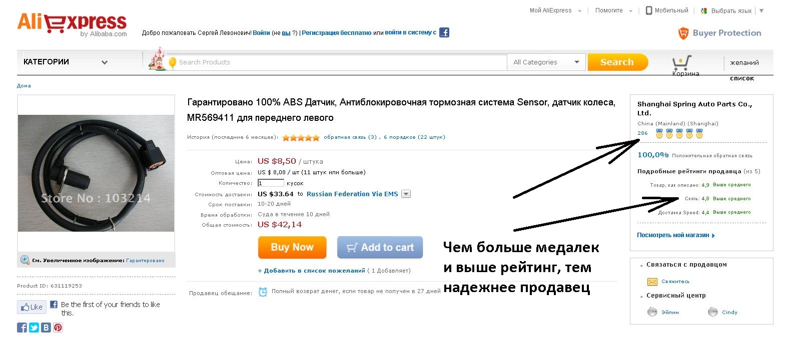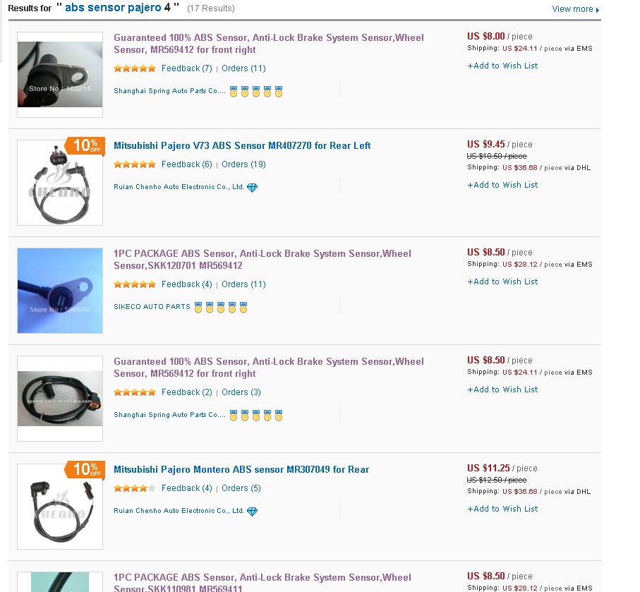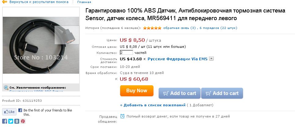 Теперь рассмотрим поиск и покупку датчиков ABS на примере.