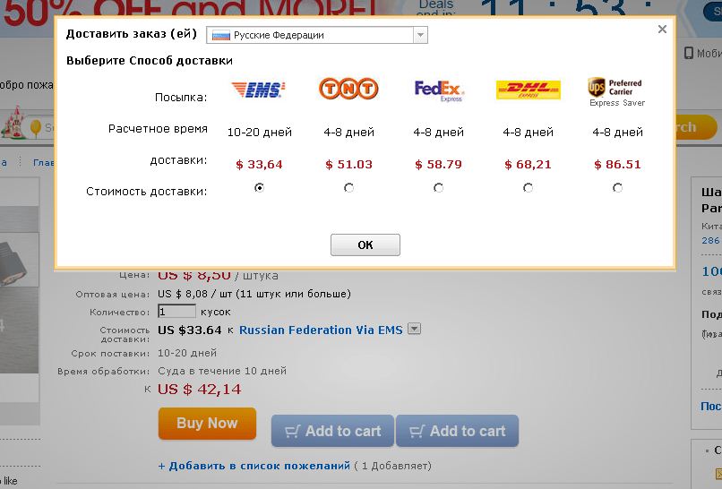 Кстати, можно сильно сэкономить, если выбрать способ доставки