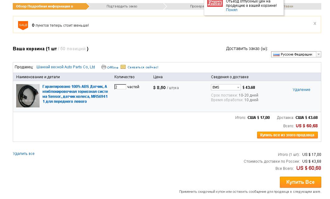 8.JPG Дальше к примеру выбрали 2 датчика АБС и доставку ЕМС почтой. На сайте автоматом все пересчитывается