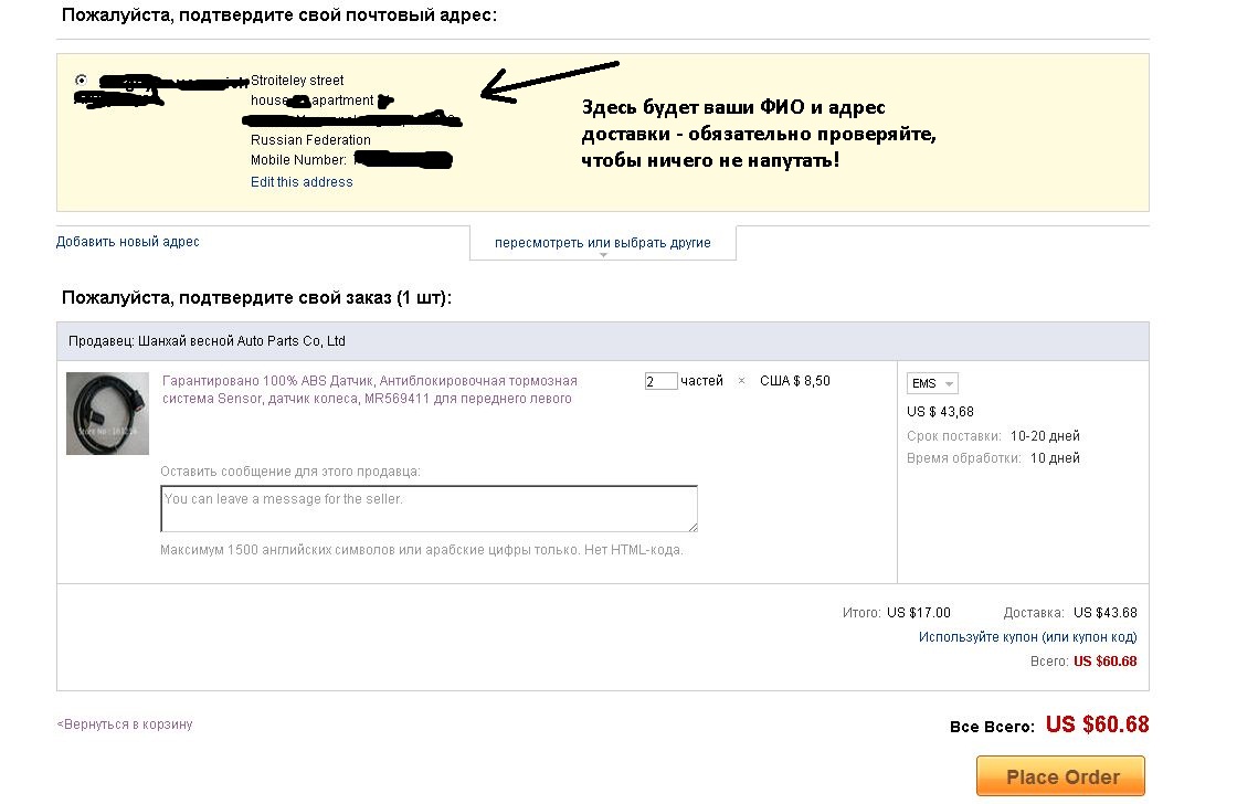 Еще раз надо все перепроверить и тогда жмем кнопку "Place Order".
