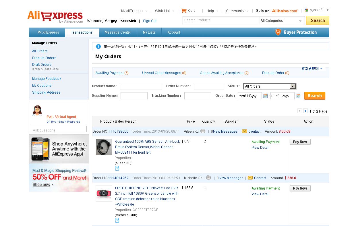 После регистрации идем по ссылке на крупнейший в мире сайт продажи товаров Алиэкспресс - http://www.aliexpress.com/