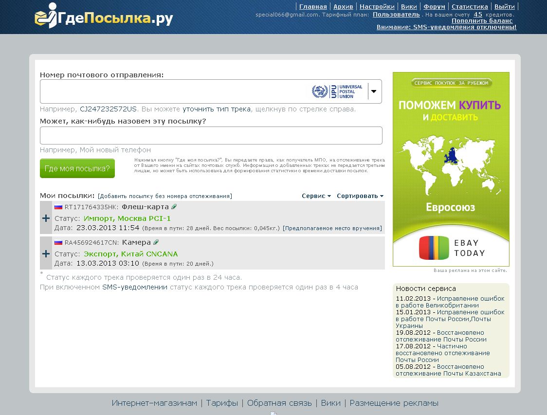 Ну а на этих сайтах ничего сложного. Регистрируетесь, вбиваете трек-код и ждете.