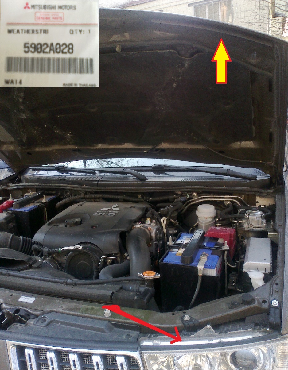 Номер уплотнителя — 5902A028 . Надо 2 штуки на капот, идёт сразу с пистонами.