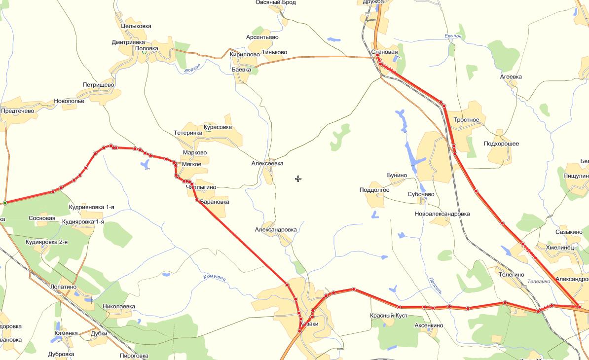 1. Цивилизованный 2. Неизвестный Неизвестный вариант объезда короче в 2 раза, но есть как минимум 1 участок где непонятна дорога: Поповка-Дмитриевка (Через реку Воргол). Так же складывается впечатление, что большая часть маршрута проходит по грунтовым дорогам, чаще всего по полям, и каково их состояние - не известно. Пользуются ли ими вообще?