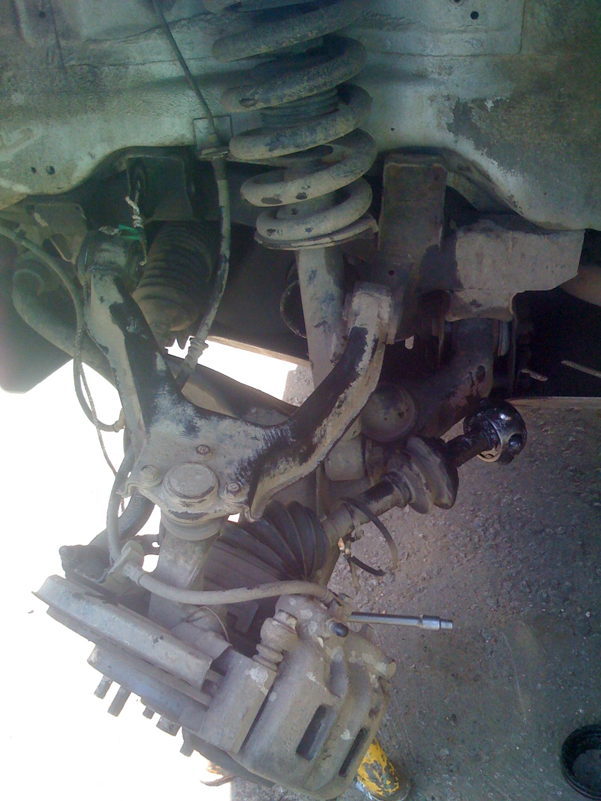 8) подвязываем верхний рычаг что бы не в натяг был тормознй шланг