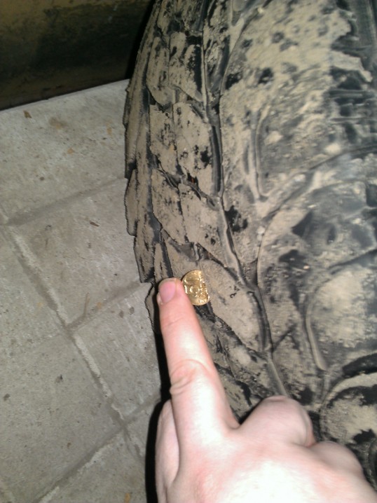 Протектор: 2 колеса примерно на половину 50копеечной монеты, 2 других немного меньше.