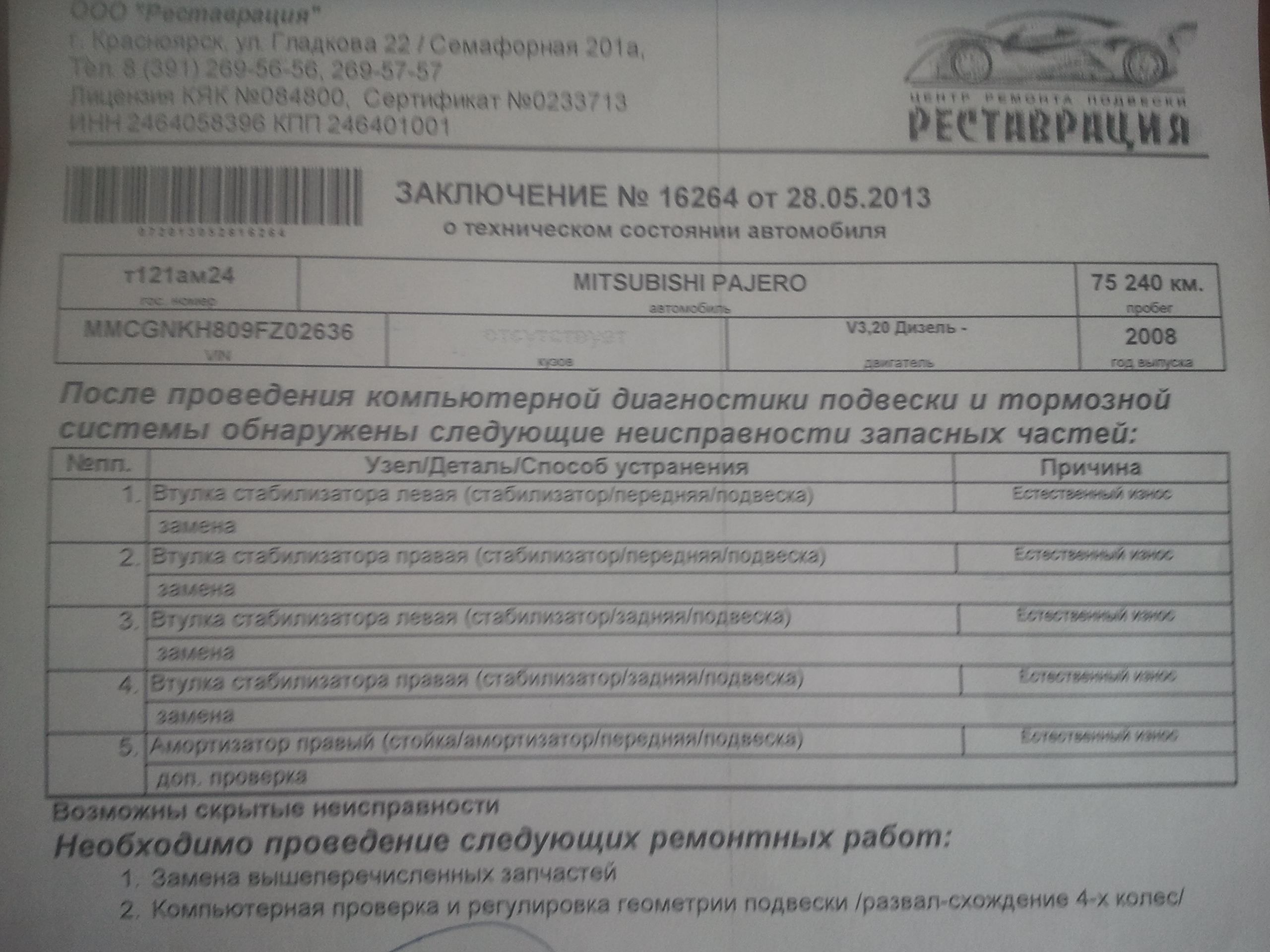 Загнали на стенд и давай её трясти как только можно, и с помощью своего хитрого агрегата и в ручную. Вердикт такой. Все в порядке, КРОМЕ втулок стабилизатора и передних стоек, Особенно с правой стороны. Не думаю, что втулки стабилизатора дают такой стук, да и мастер сказал, что врядли от этого.