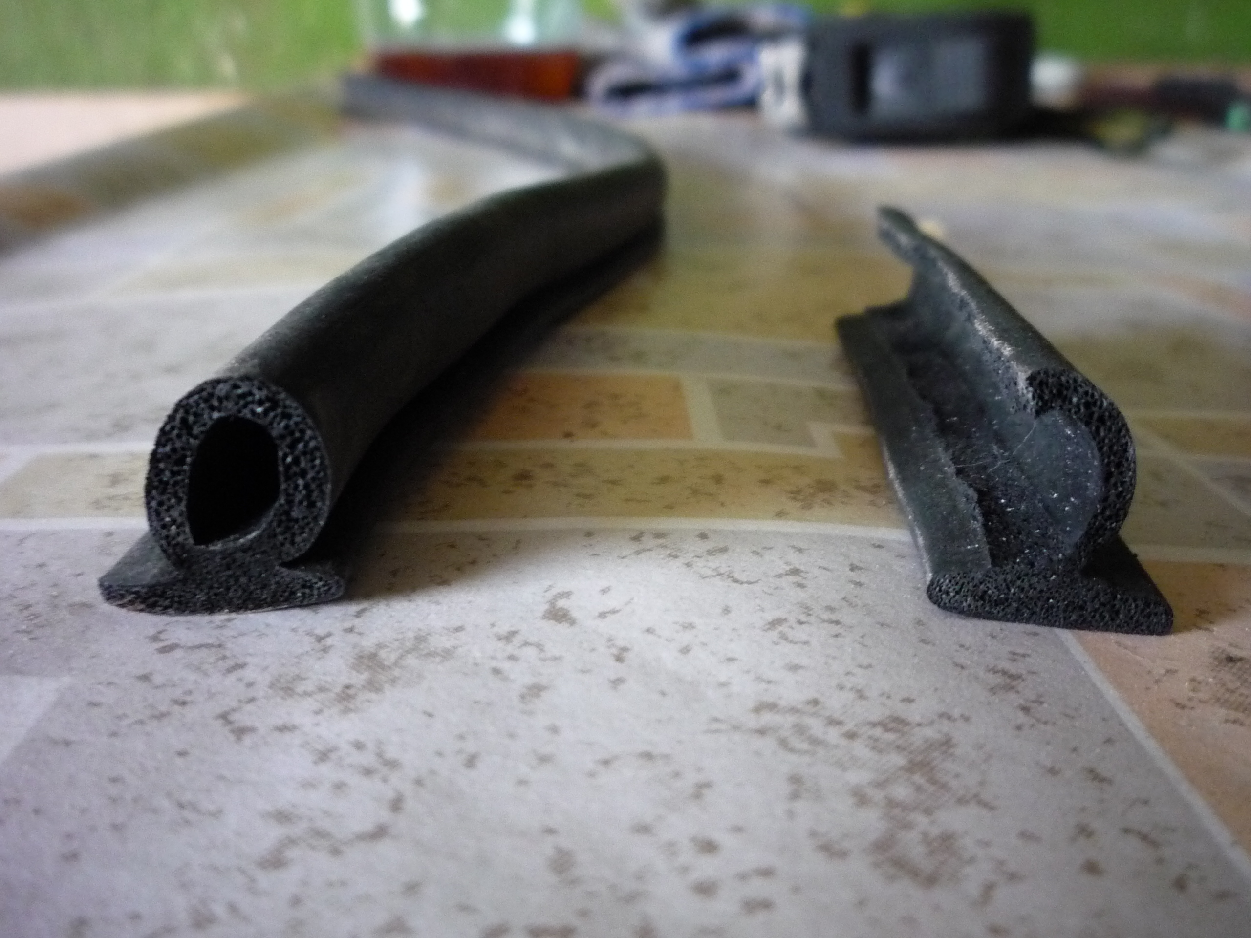 Заморочился заменить резинки, родные потрескались. В автомагазине с продавцом подобрали уплотнитель пятой двери, от УАЗа.