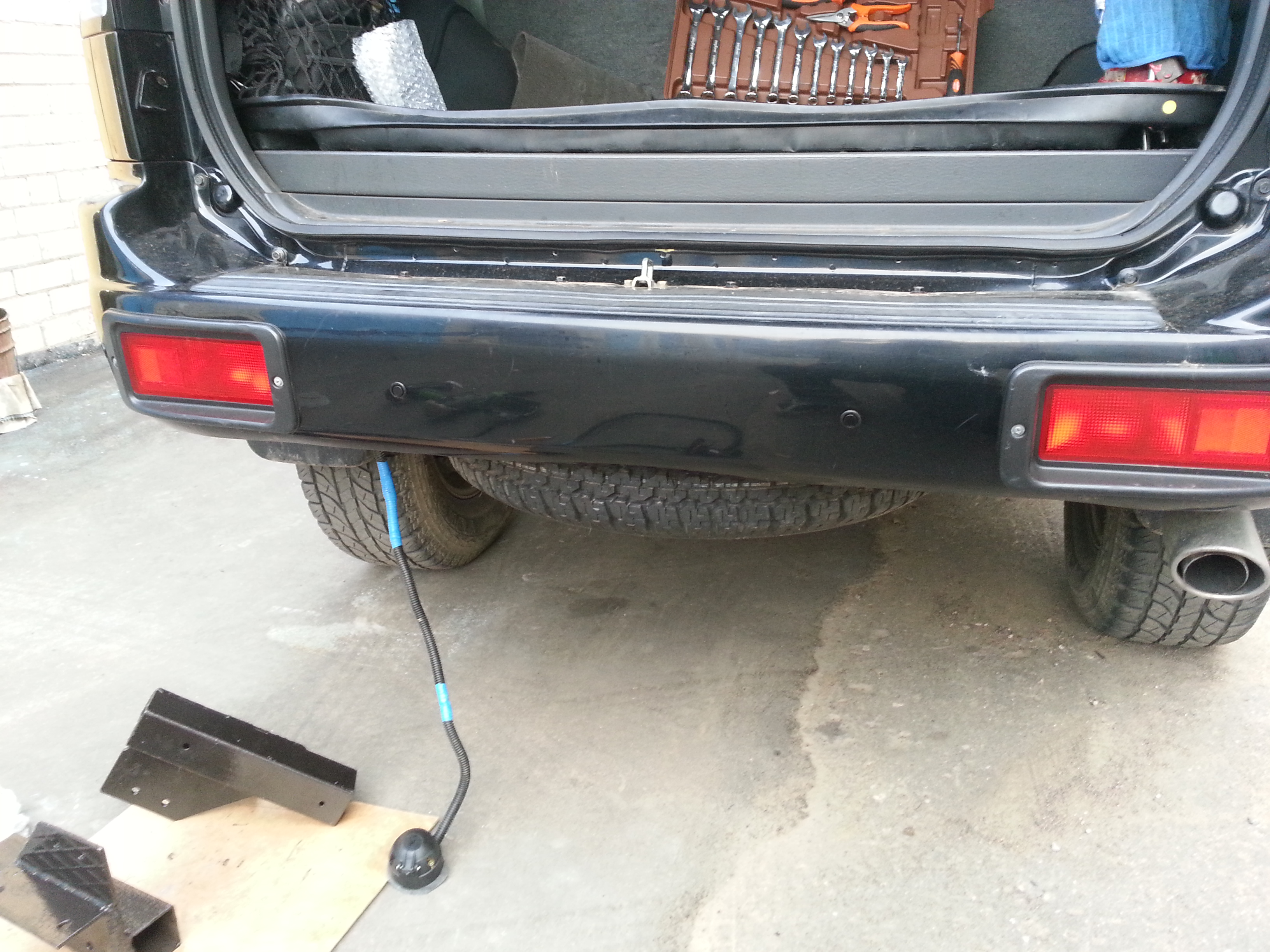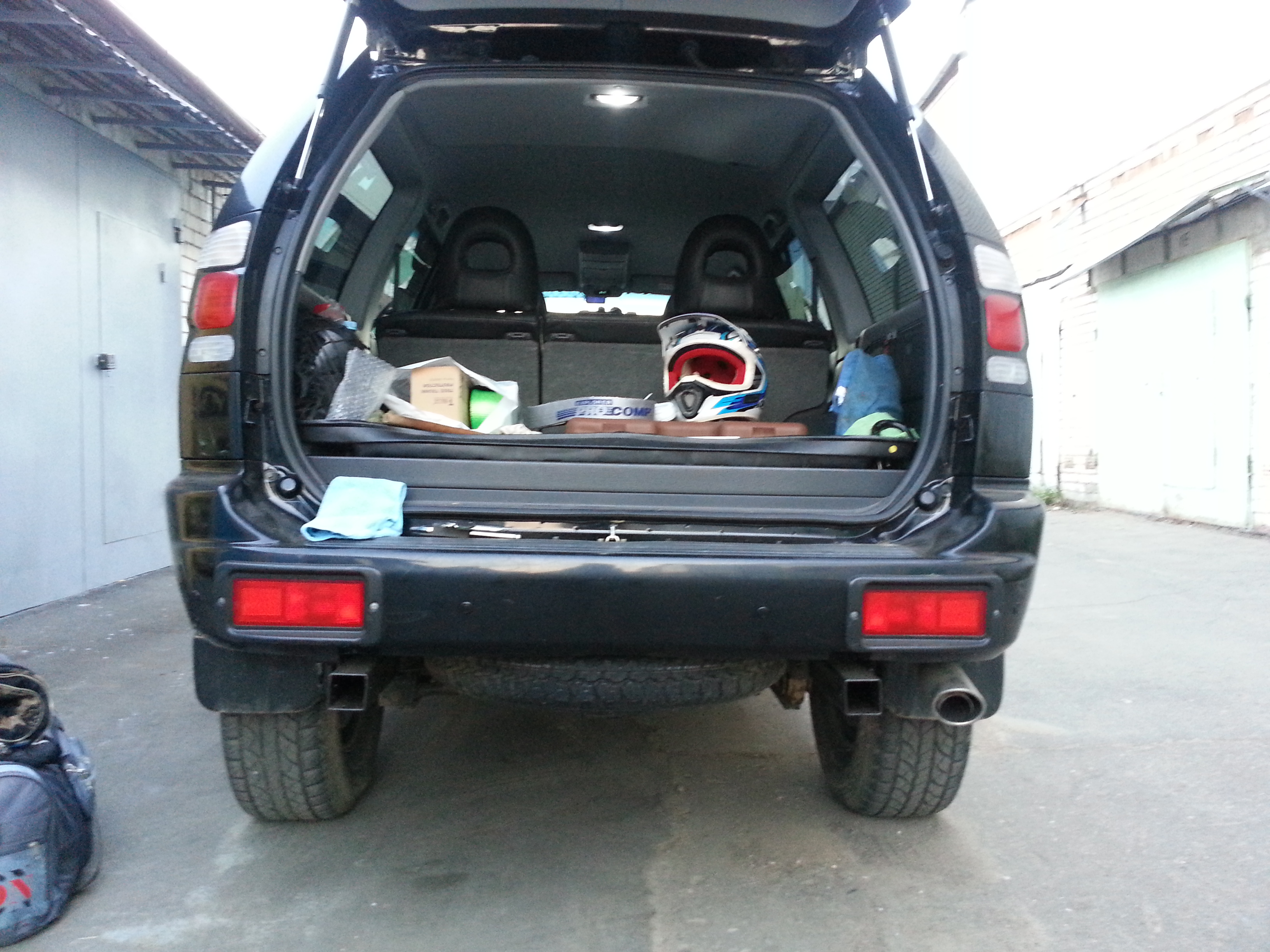 http://pajero4x4.ru/bbs/phpBB2/viewtopi ... 1%81%D1%82 вот тема.. фото старое - но я повесил поворотники и стопы от прицепа и подключаю все к разьему...хвост вешаю не на фаркоп, а на раму - получается 2 точки опоры. возил мотик - Хонда африка - 200 кг.