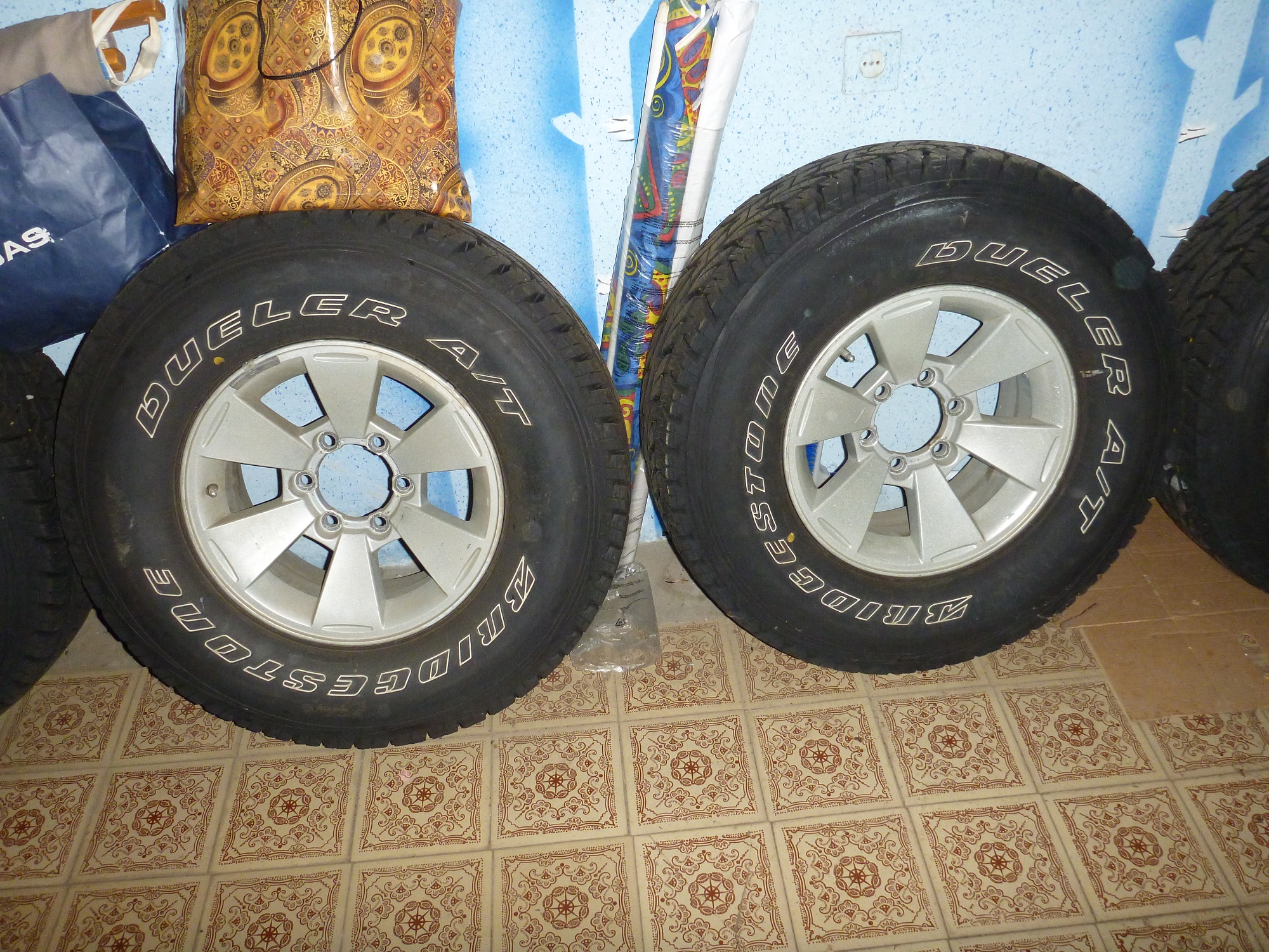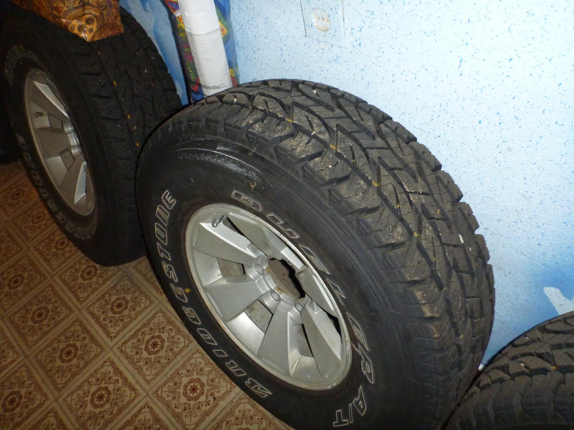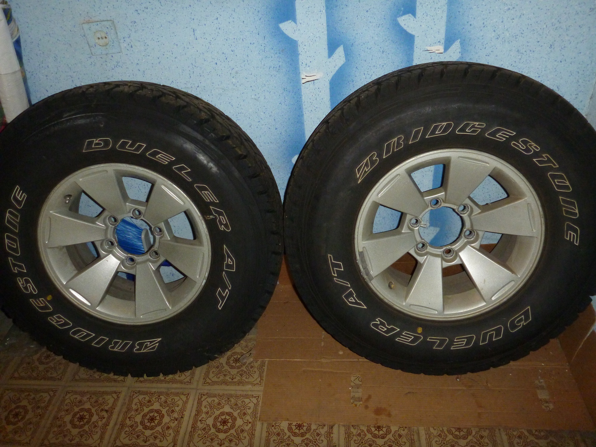 Продам комплект родных дисков от МПС 1 2008г шины Bridgestone Dueler A/T 697 265/75R16, пробег на шинах ровно от Москвы до Краснодара и поставил купер SST на других дисках. Территориально в Краснодаре, цена 35000р