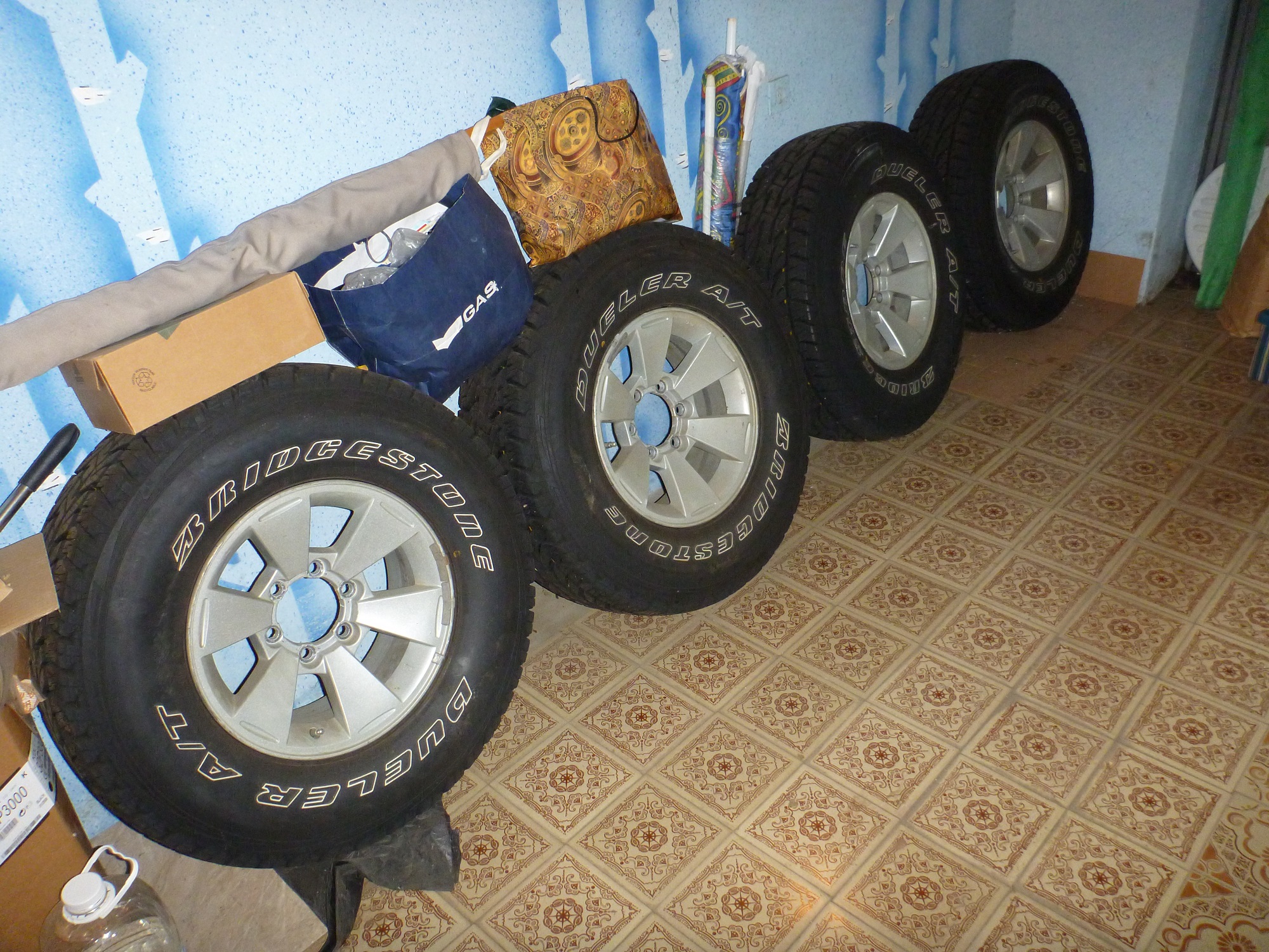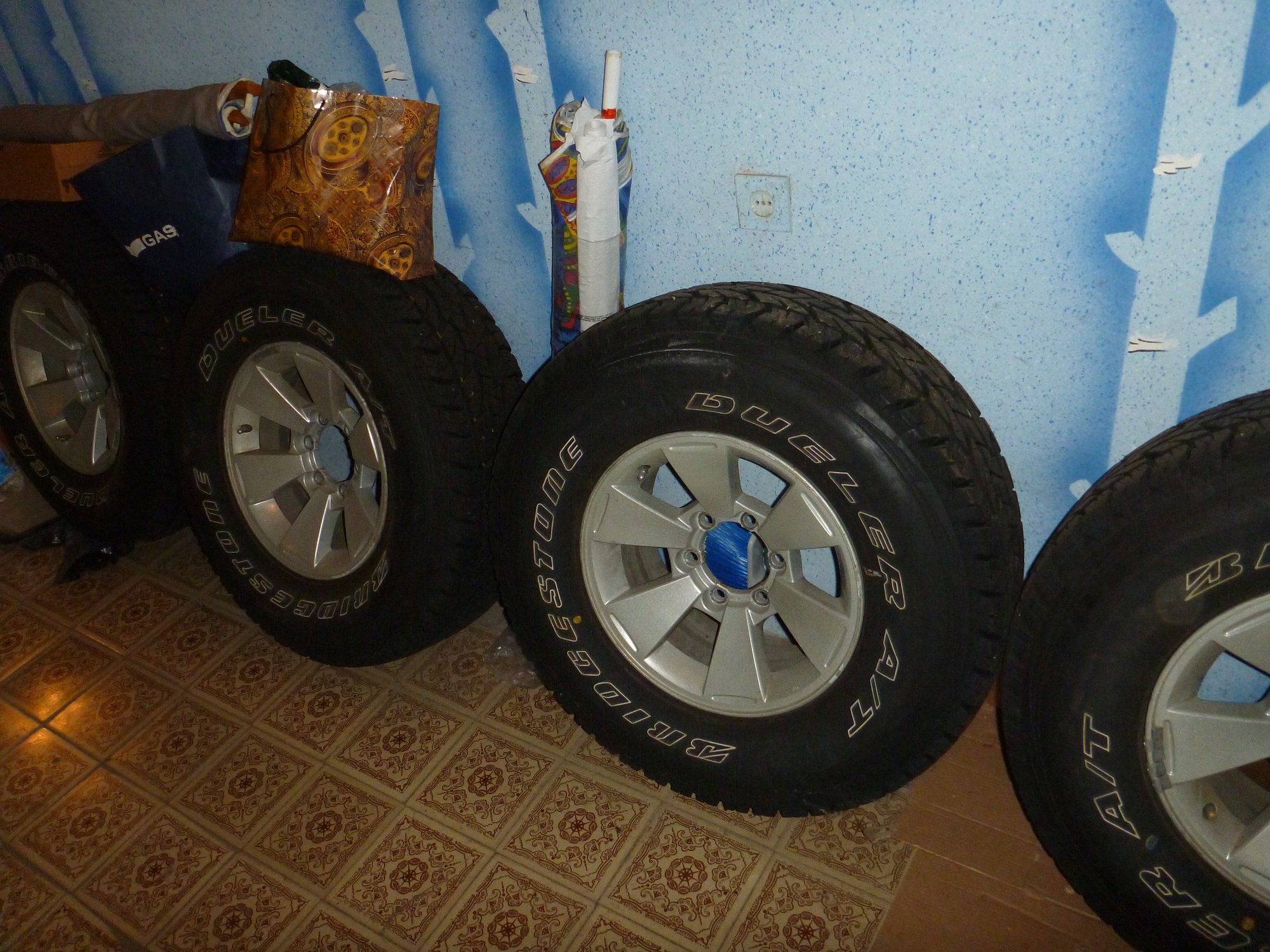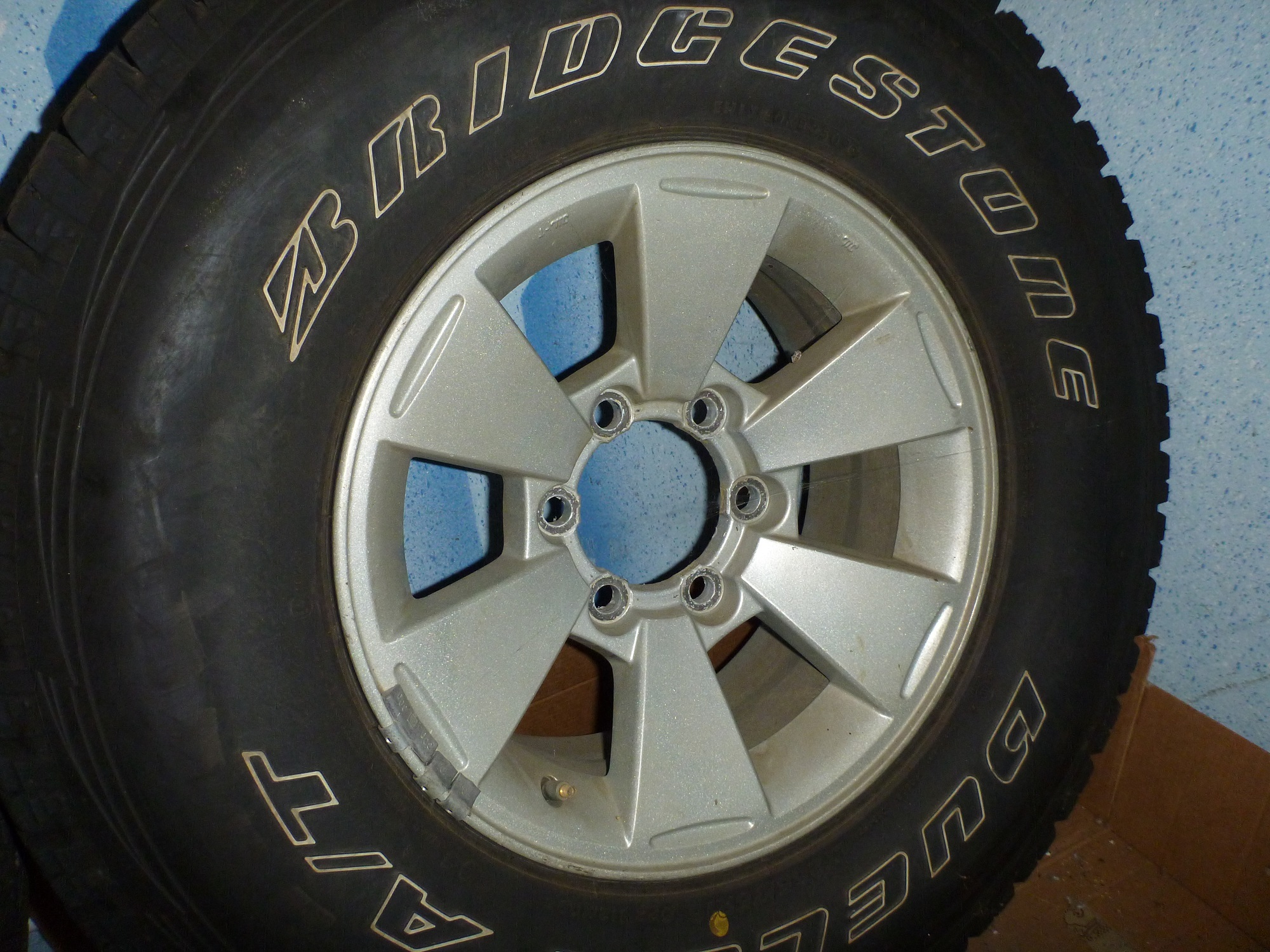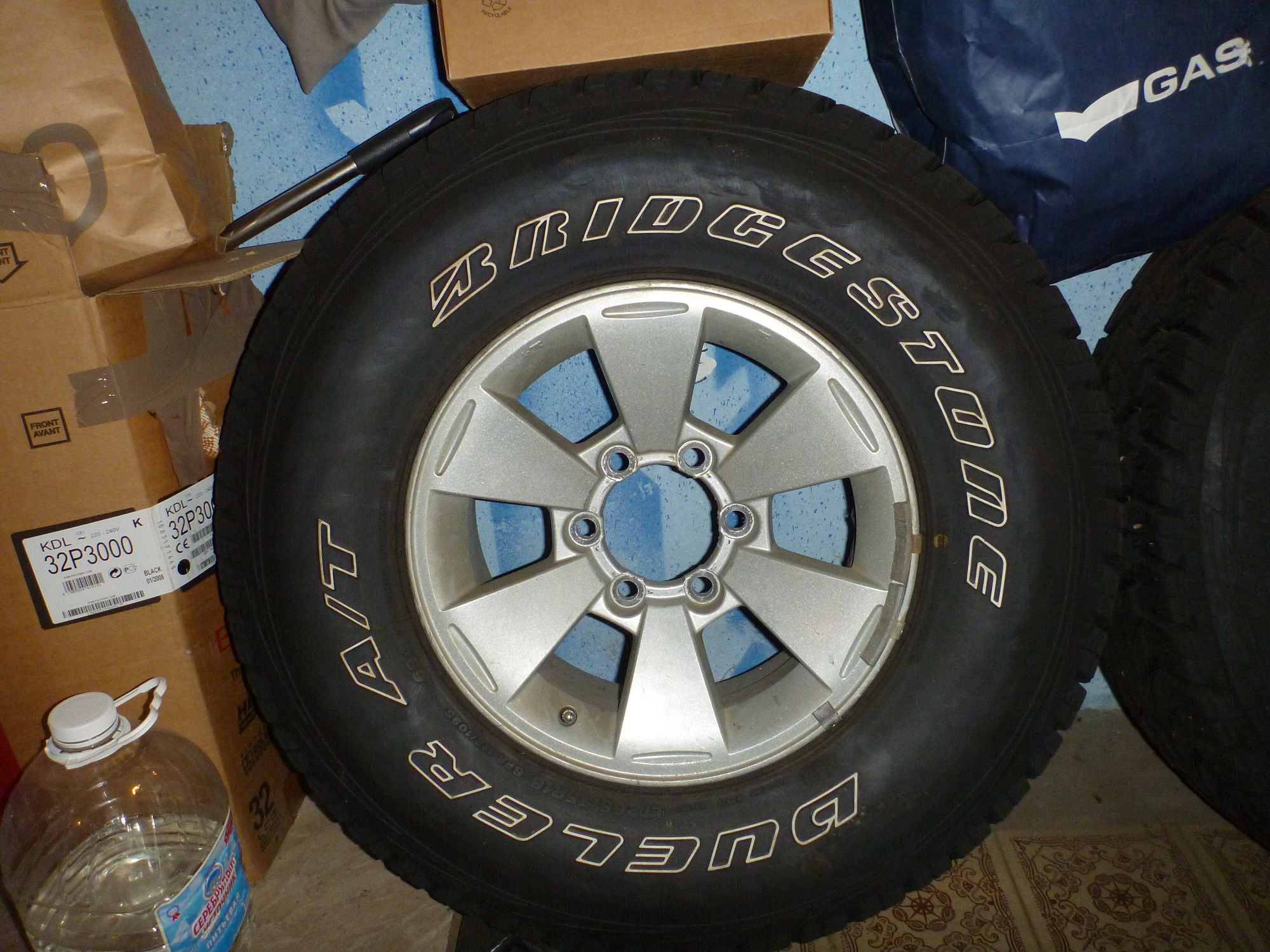Продам комплект родных дисков от МПС 1 2008г шины Bridgestone Dueler A/T 697 265/75R16, пробег на шинах ровно от Москвы до Краснодара и поставил купер SST на других дисках. Территориально в Краснодаре, цена 35000р