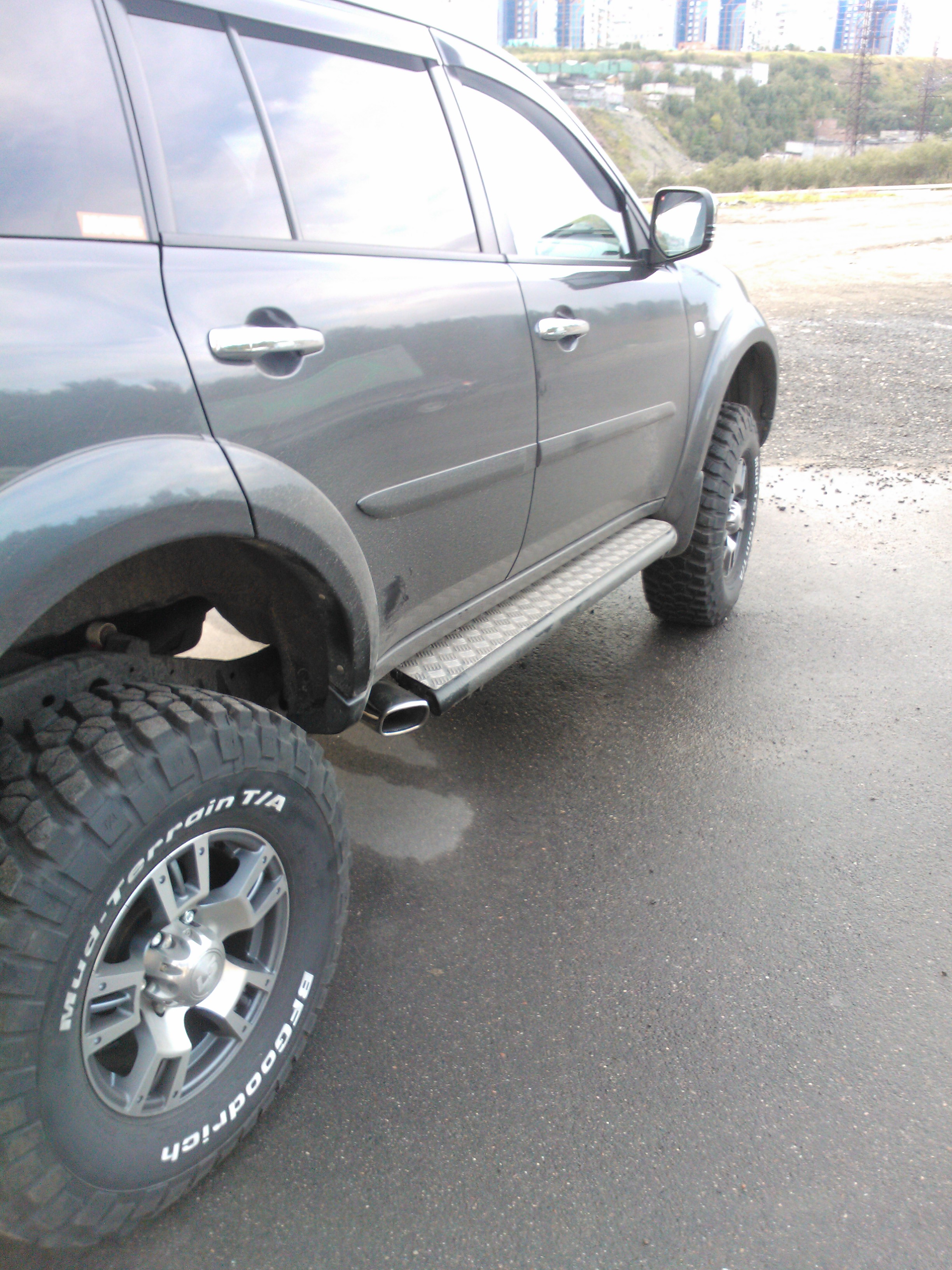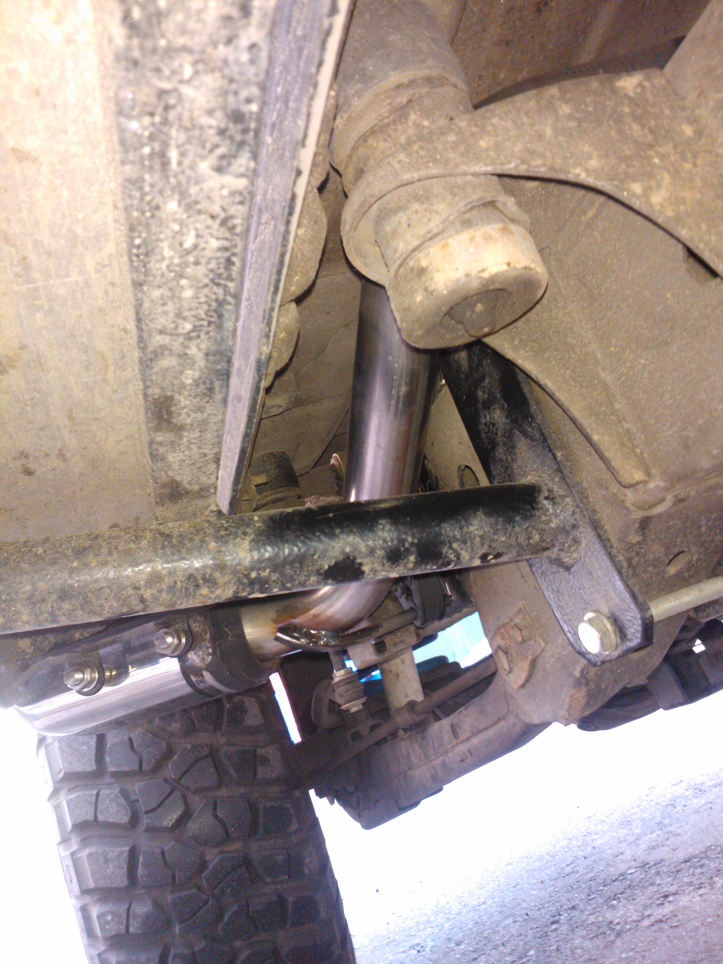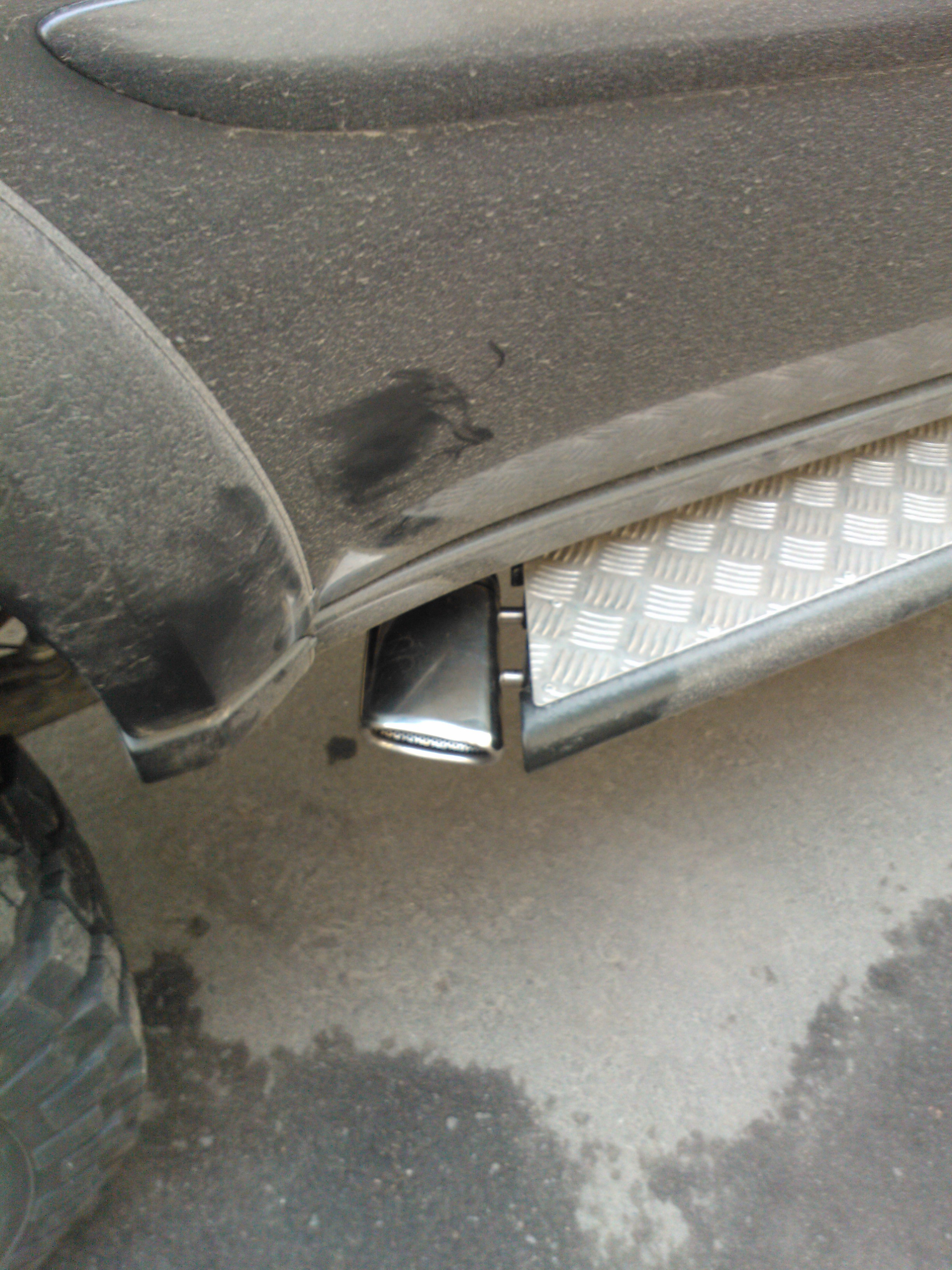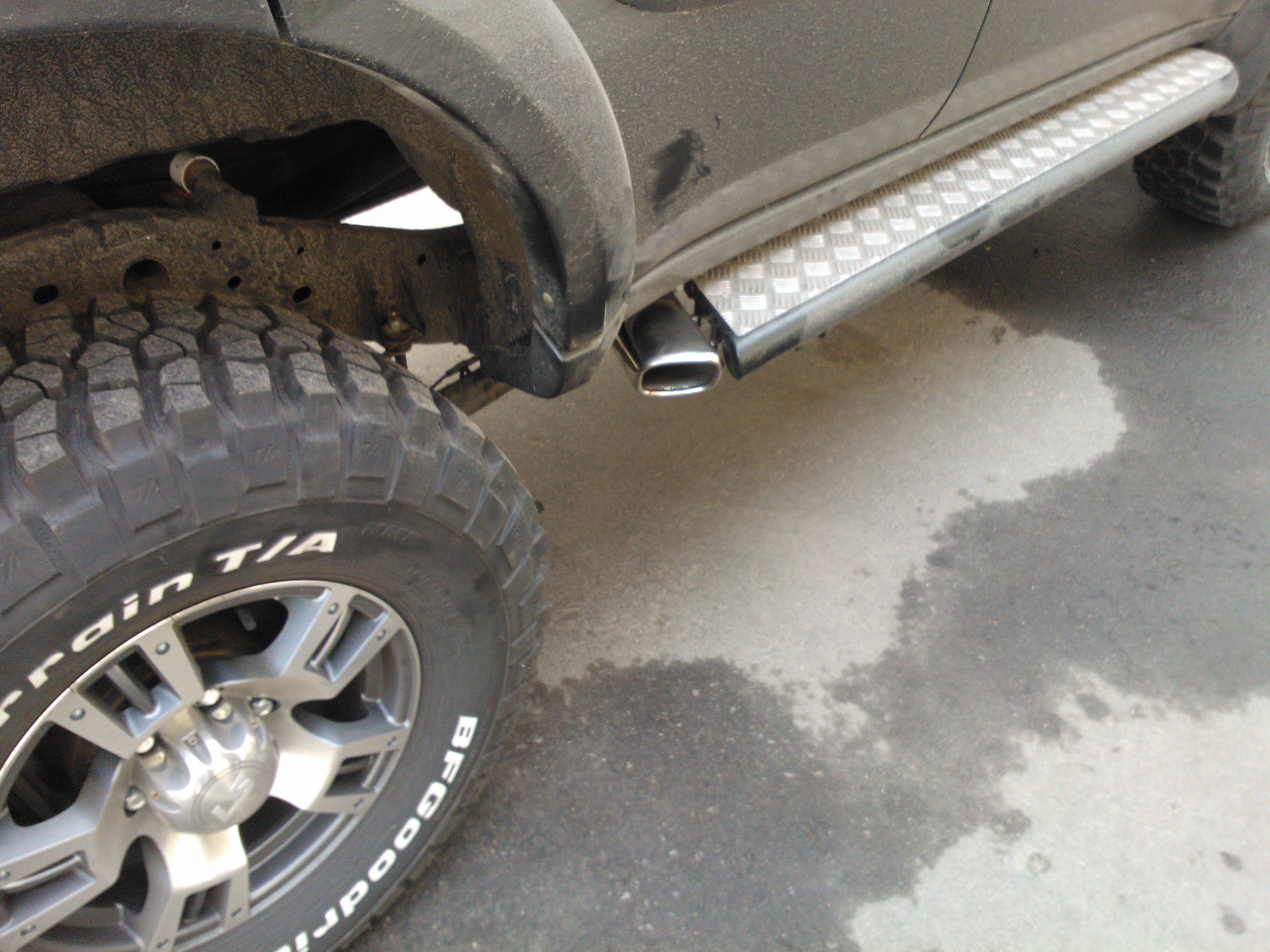 В районе раздатки штатная система была отпилена, в штатную трубу(катализатор не трогал, т.к. слышал о *вонючих дизелях* после выбивания оного и не хотел получить нечто, похожее на Камаз ранним морозным утром))) врезал оригинальный резонатор от Аута XL 2.4. Вварили в него диффузор, типо по всем канонам прямотока.... Позже к нему вернёмся... Далее труба нержавейка, немного гибов и перепрыгнули раму в самом удобном месте, около подушки кузова, с точным выходом на нержавейку оригинал Ulter. Насадка жёстко закреплена к порогу, вся система висит на резинках. Труба входит в насадку точно по центру, не казаясь её. По краям трубы до насадки около 10мм,- хода достаточно и не при каких условиях она не бренчит. При поездке в заведомо извесный говнолин насадка снимается за 2 минуты. Ну а при повседневной эксплуатации- ничего так смотрится вроде